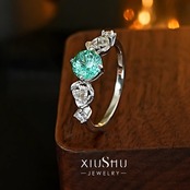 「True Love Rose」ミレニアムローズカット バラ 薔薇 人工パライバトルマリン 高炭素ダイヤモンド ホワイト キラキラ ゴージャス 指輪 リング ハイカーボンダイヤモンド シルバー925 レトロ フラワー 花 華やか ブルー グリーン | キラキラゴージャスジュエリーのXIUSHU(シュシュ)
