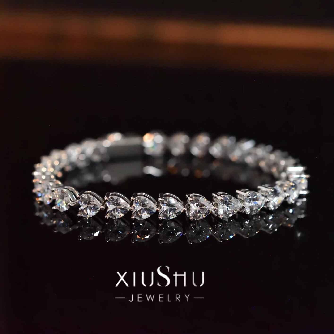 ハート エタニティブレスレット 高炭素ダイヤモンド キラキラ ゴージャス ラグジュアリー シルバー925 高炭素ダイヤモンド テニス ホワイト 大人可愛い かわいい | キラキラゴージャスジュエリーのXIUSHU(シュシュ)