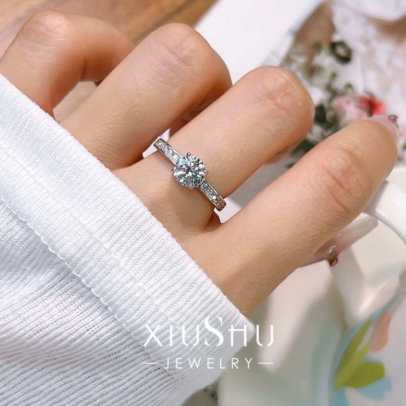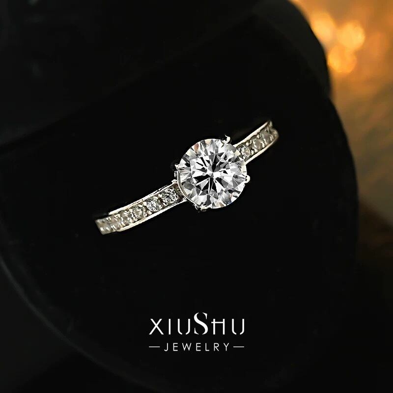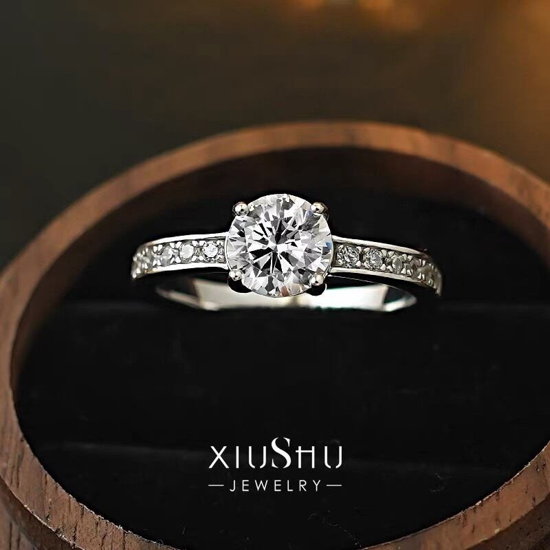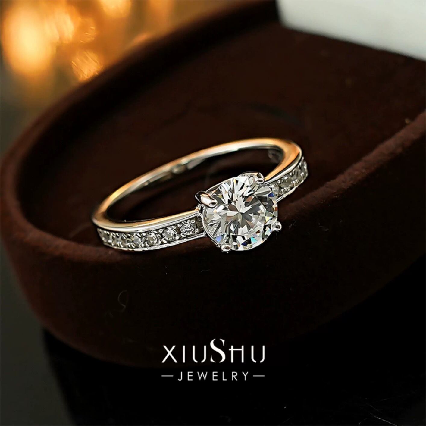 ラウンドカット チャネルセッティング 高炭素ダイヤモンド キラキラ ゴージャス 指輪 ハイカーボンダイヤモンド ホワイト エンゲージリング S925 シルバー925 リング | キラキラゴージャスジュエリーのXIUSHU(シュシュ)