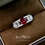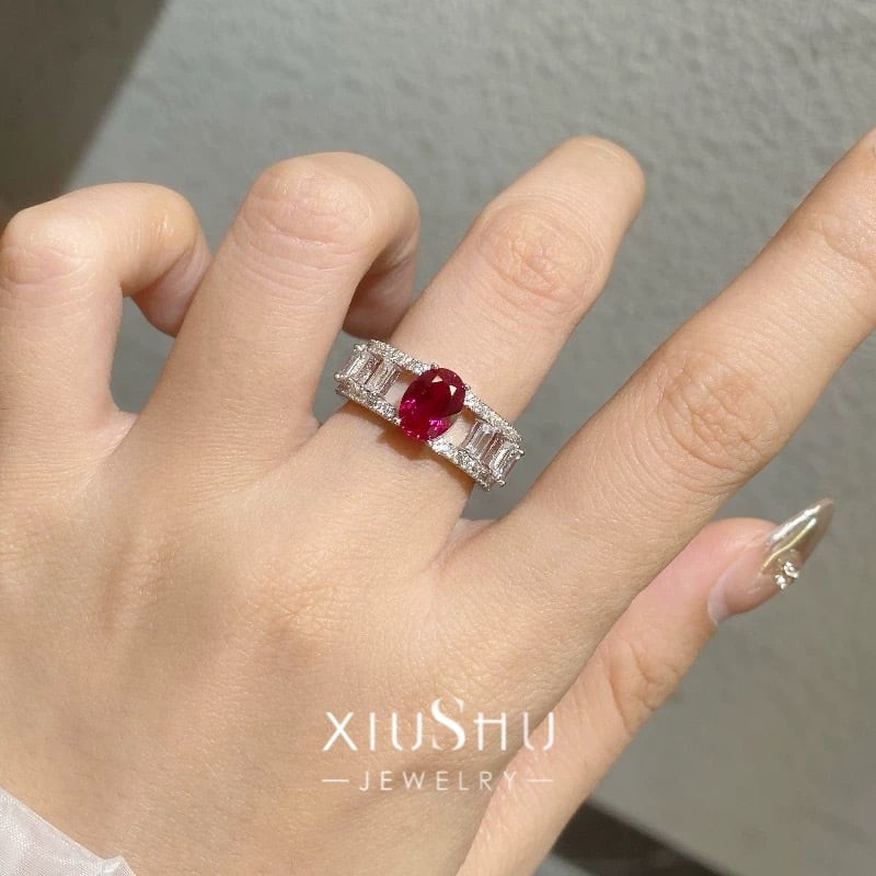 人工ルビー ピジョンブラッド オーバル オープンワーク 透かし 高炭素ダイヤモンド キラキラ ゴージャス 指輪 ハイカーボンダイヤモンド シルバー925 リング レッド 赤 レトロ | キラキラゴージャスジュエリーのXIUSHU(シュシュ)