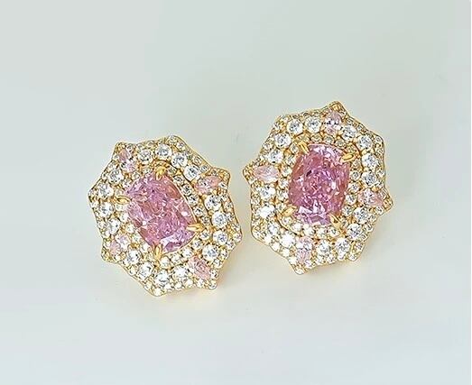 フェミニンな輝きが魅力のピンクハイカーボンダイヤモンドピアス。