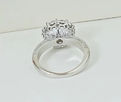 フラワー シェイプ ラウンド 高炭素ダイヤモンド キラキラ ゴージャス 指輪 ハイカーボンダイヤモンド ホワイト エンゲージリング S925 シルバー925 リング ヘイローリング 花 | キラキラゴージャスジュエリーのXIUSHU(シュシュ)
