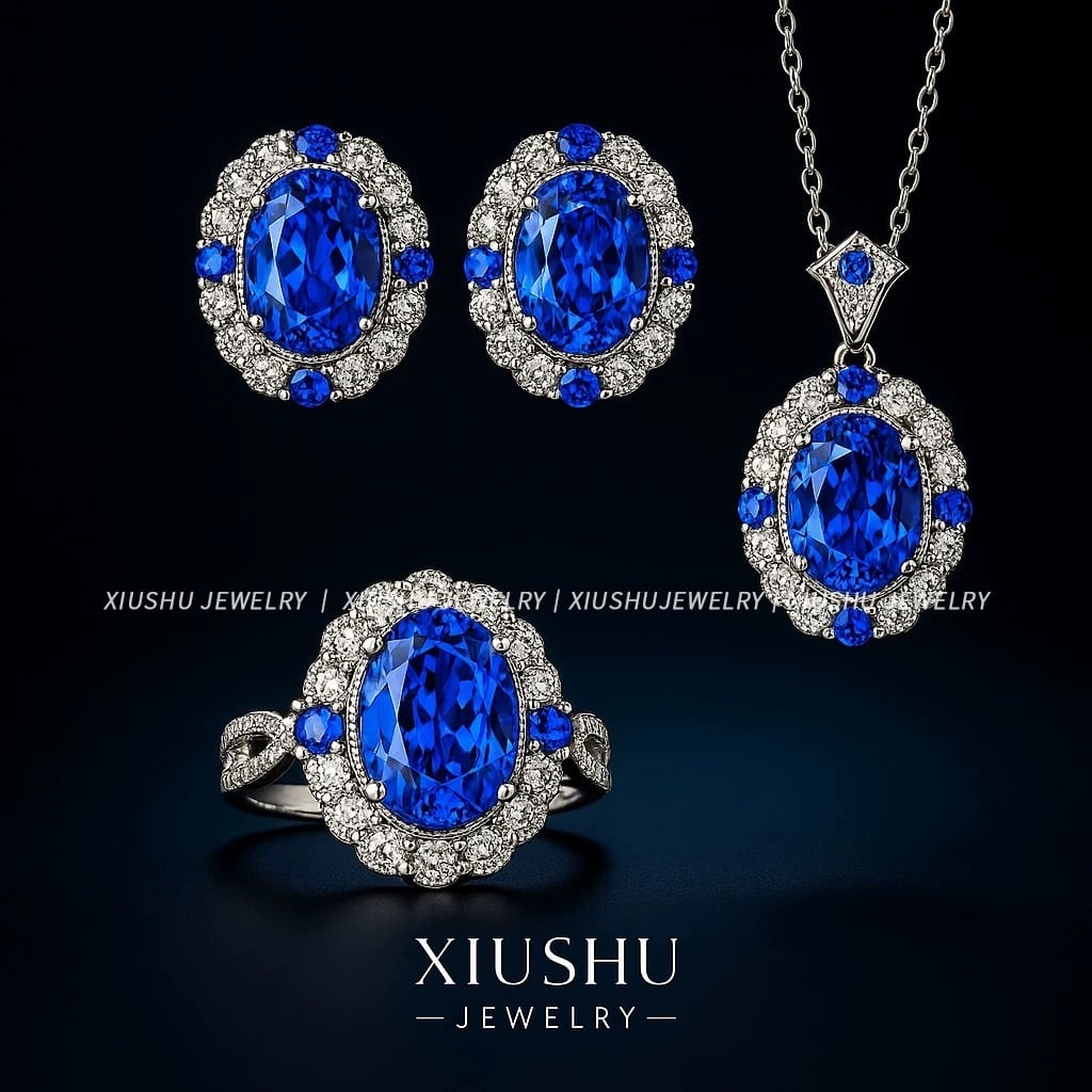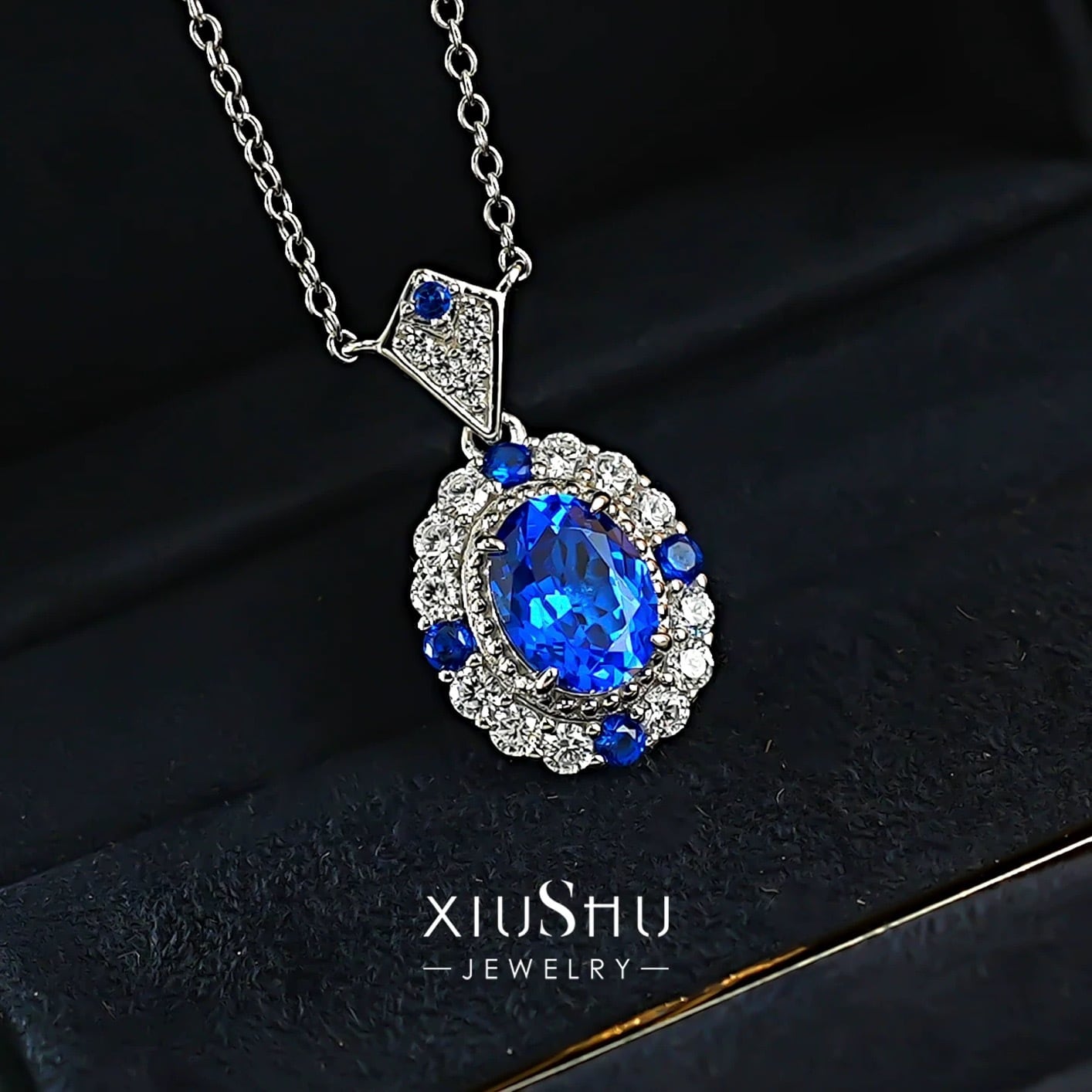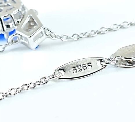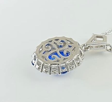 人工コーンフラワーサファイア フルファイアカラー 高透明度 1.5ct オーバル ネックレス ブルー 青 高炭素ダイヤモンド キラキラ ゴージャス ハイカーボンダイヤモンド シルバー925 ラグジュアリー レトロ クール | XIUSHU