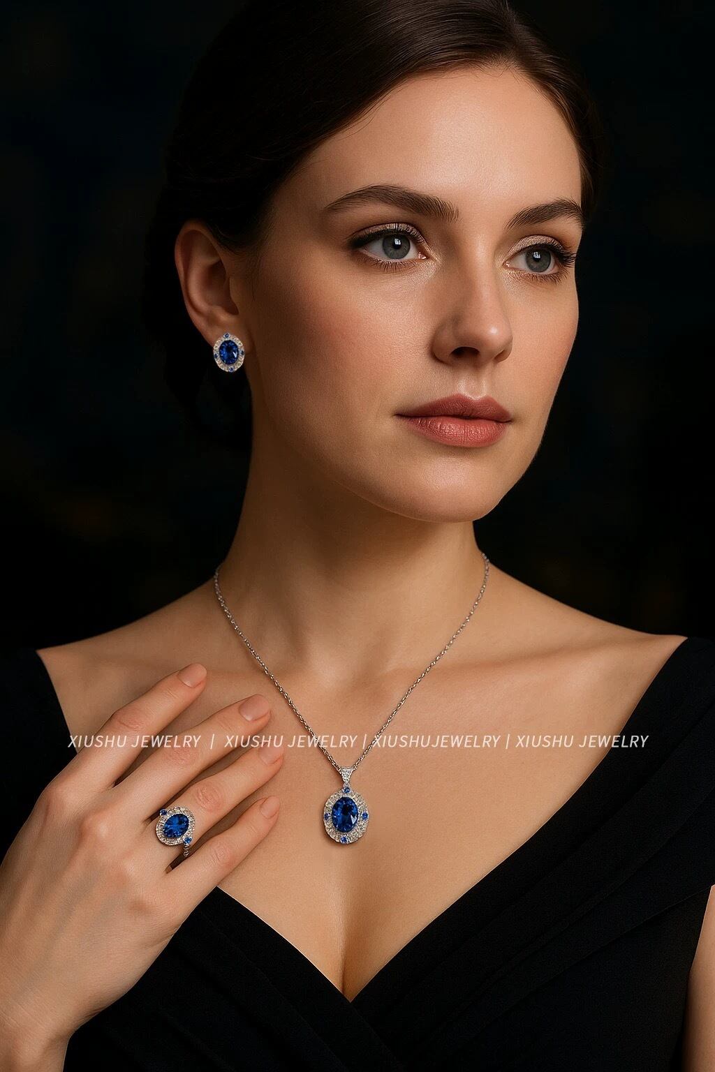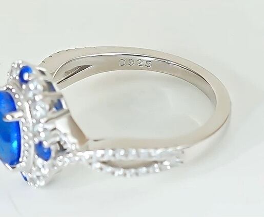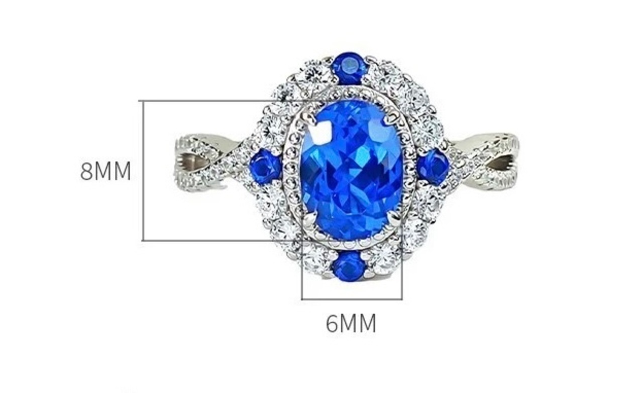 人工コーンフラワーサファイア フルファイアカラー 高透明度 1.5ct オーバル リング 指輪 ブルー 青 高炭素ダイヤモンド キラキラ ゴージャス ハイカーボンダイヤモンド シルバー925 ラグジュアリー レトロ クール | XIUSHU