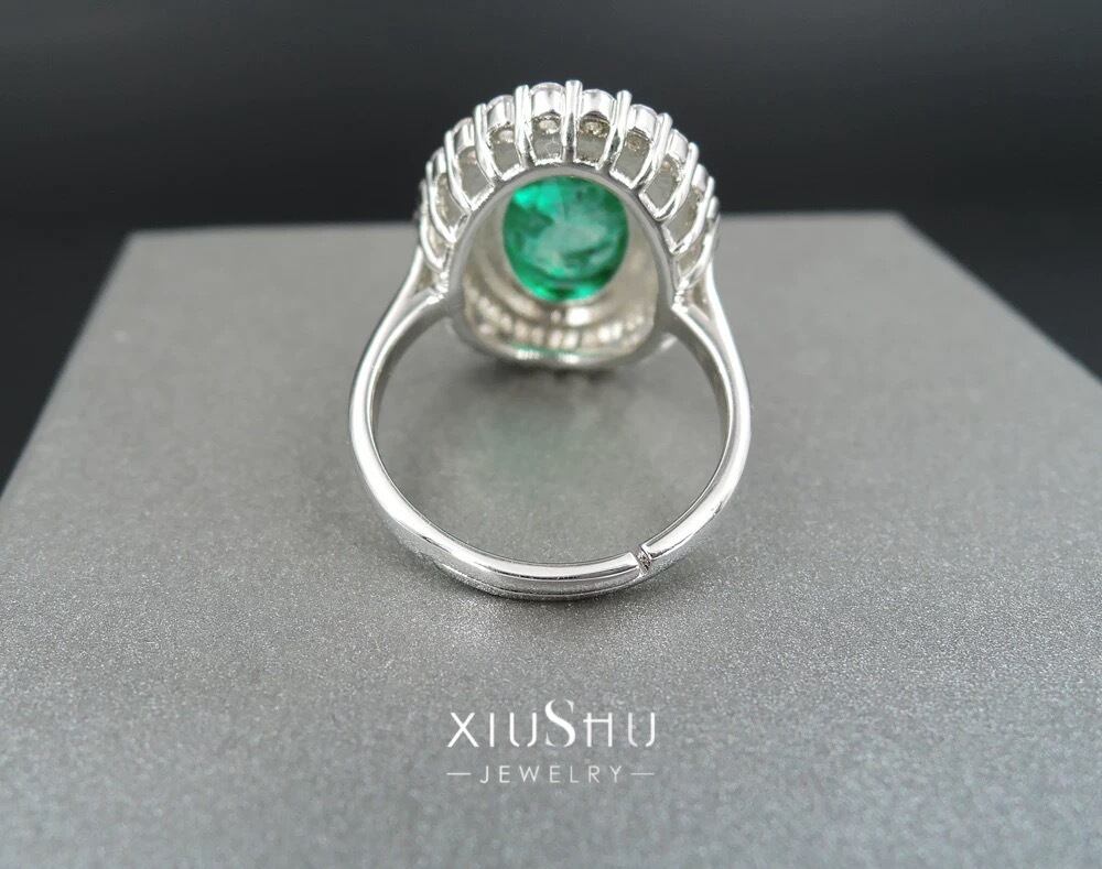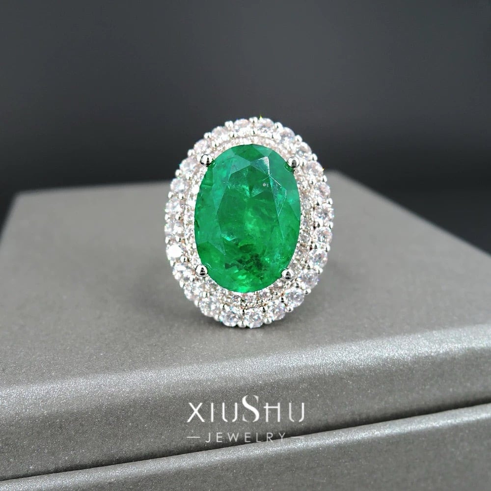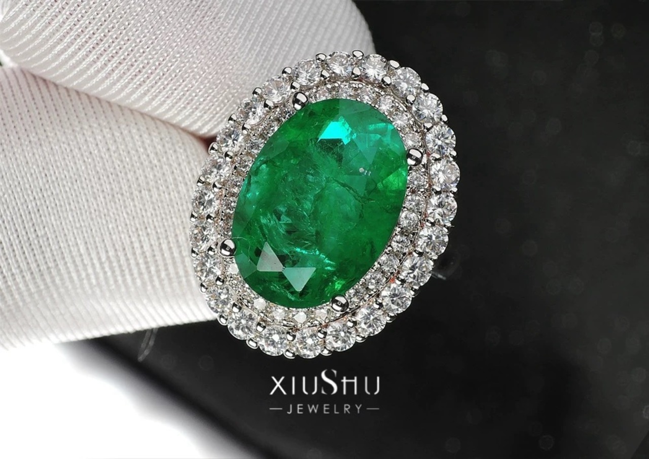合成エメラルドを使用。天然エメラルドの組成特性をシミュレートし、宝石に蛍光感があり、 脱脂綿の若干の曇り、若干の雲霧状の綿、不規則な割れ、インクルージョン、クラック、内容物の結晶化など レベルの高いエメラルドに取って代わります! 全体的に透明感がありとてもツヤツヤです!