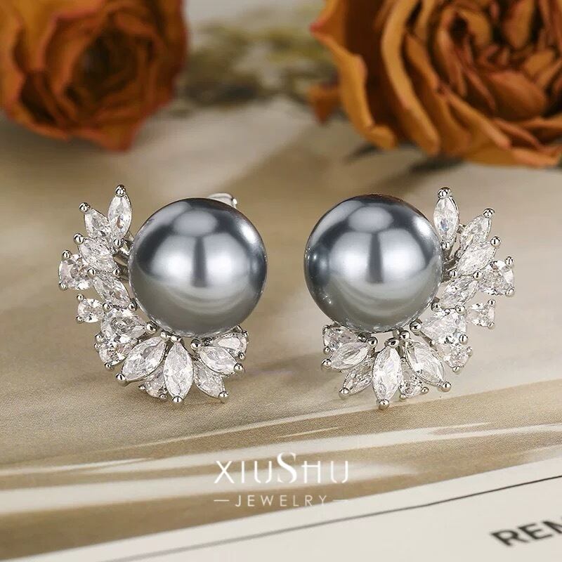 ふっくら艶めく人工パールに、ハイカーボンダイヤモンドを贅沢に散りばめたエレガントなピアス。