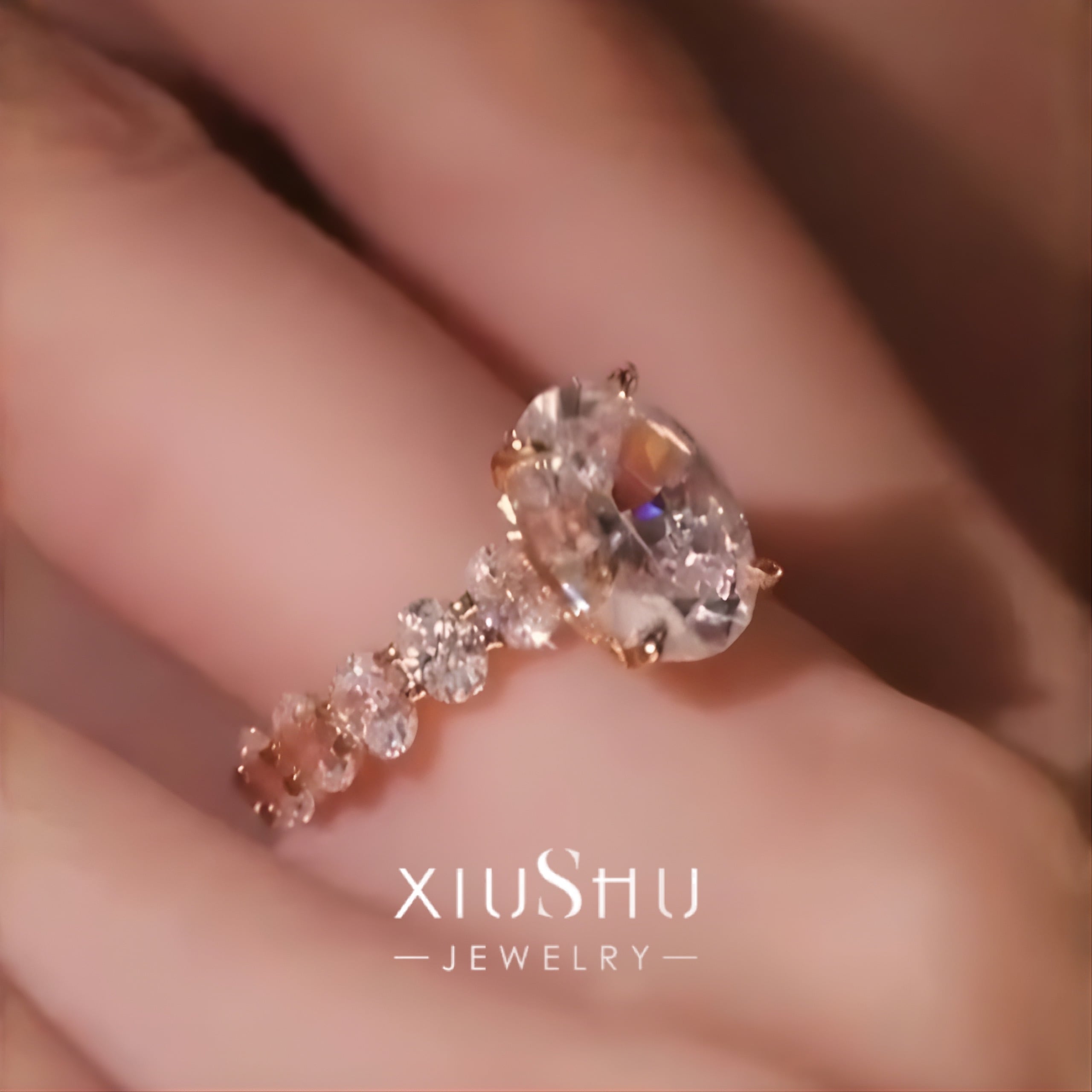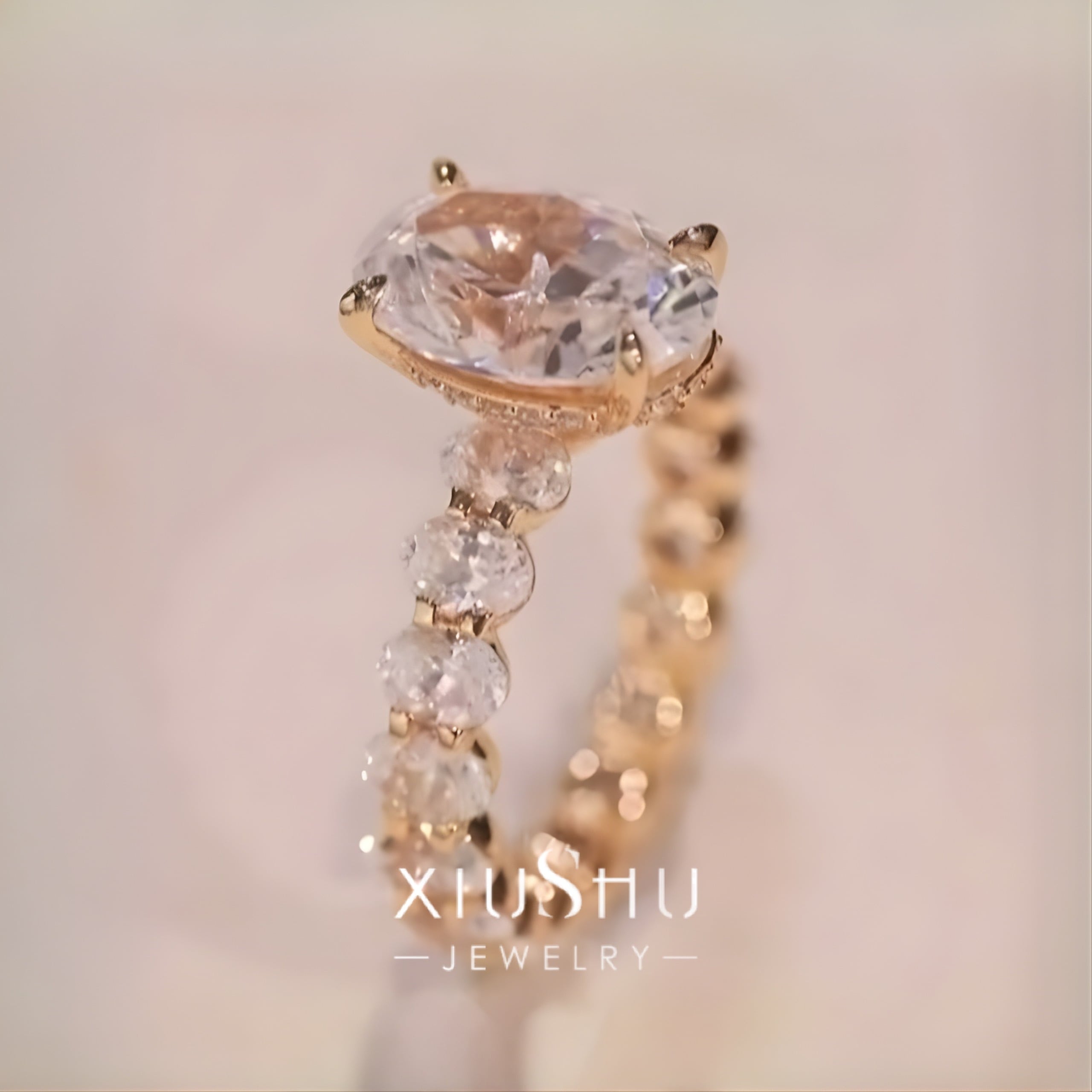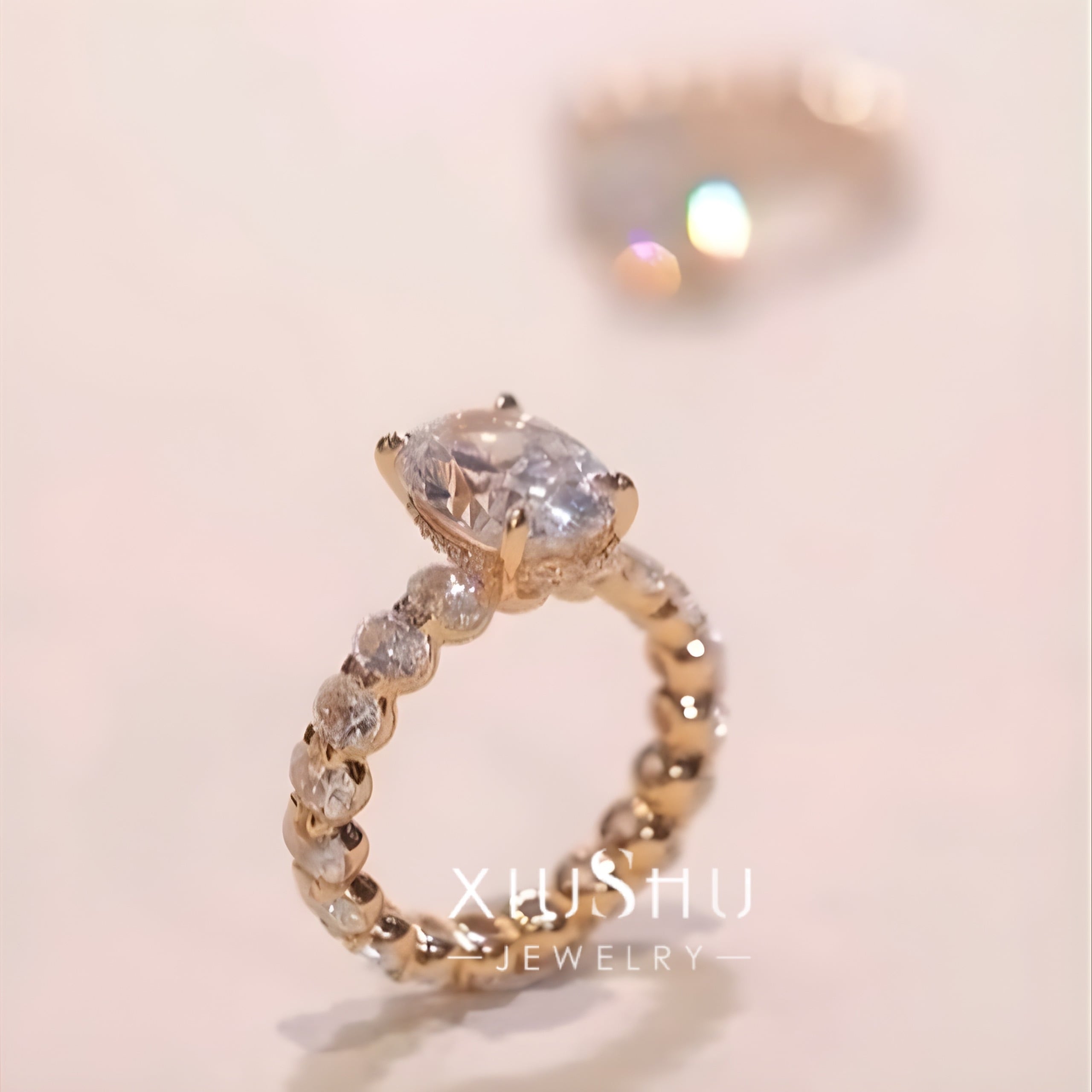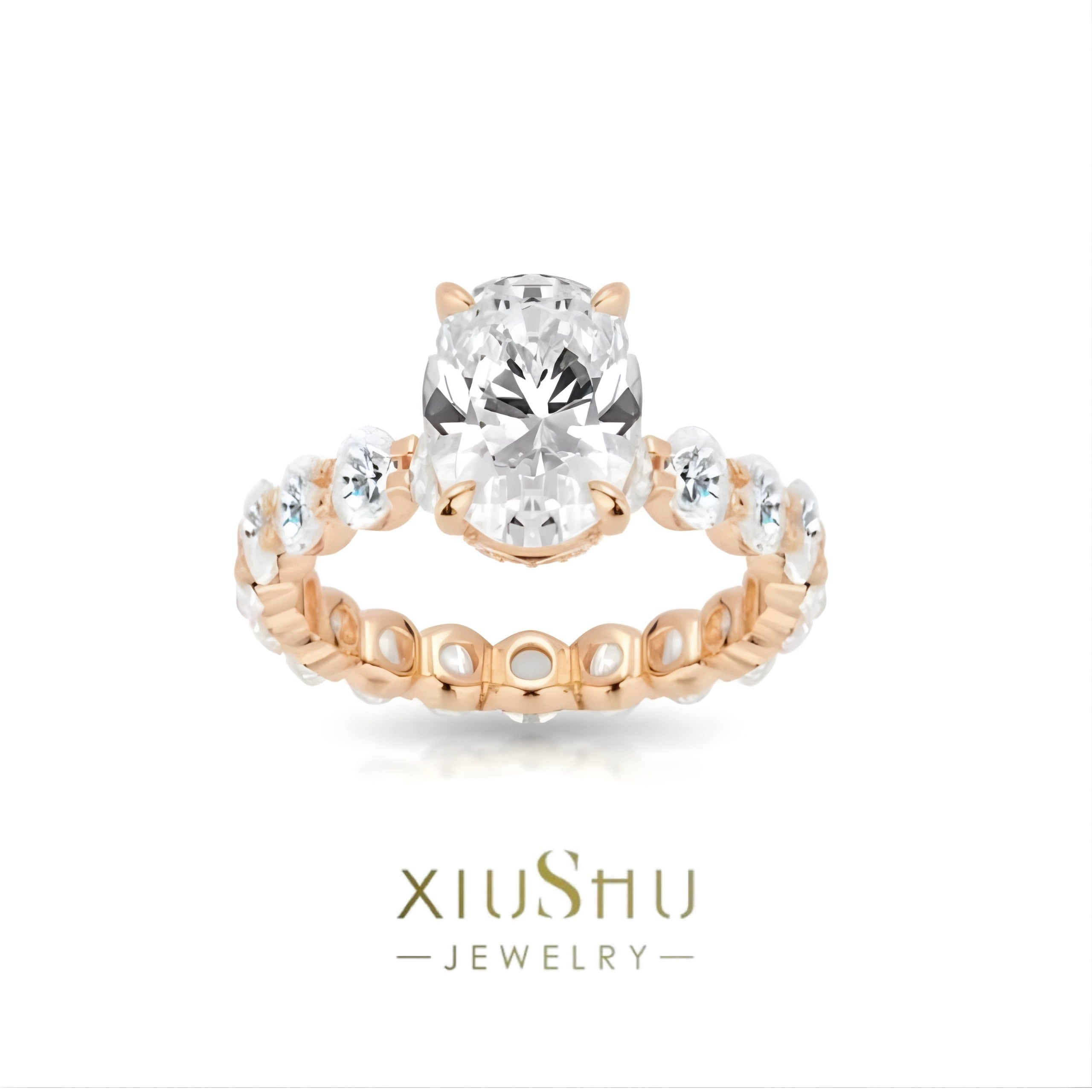 オーバル 高炭素ダイヤモンド キラキラ ゴージャス リング 指輪 ハイカーボンダイヤモンド ホワイト レトロ S925 シルバー925 シャンパン ゴールドメッキ ピンク エタニティリング