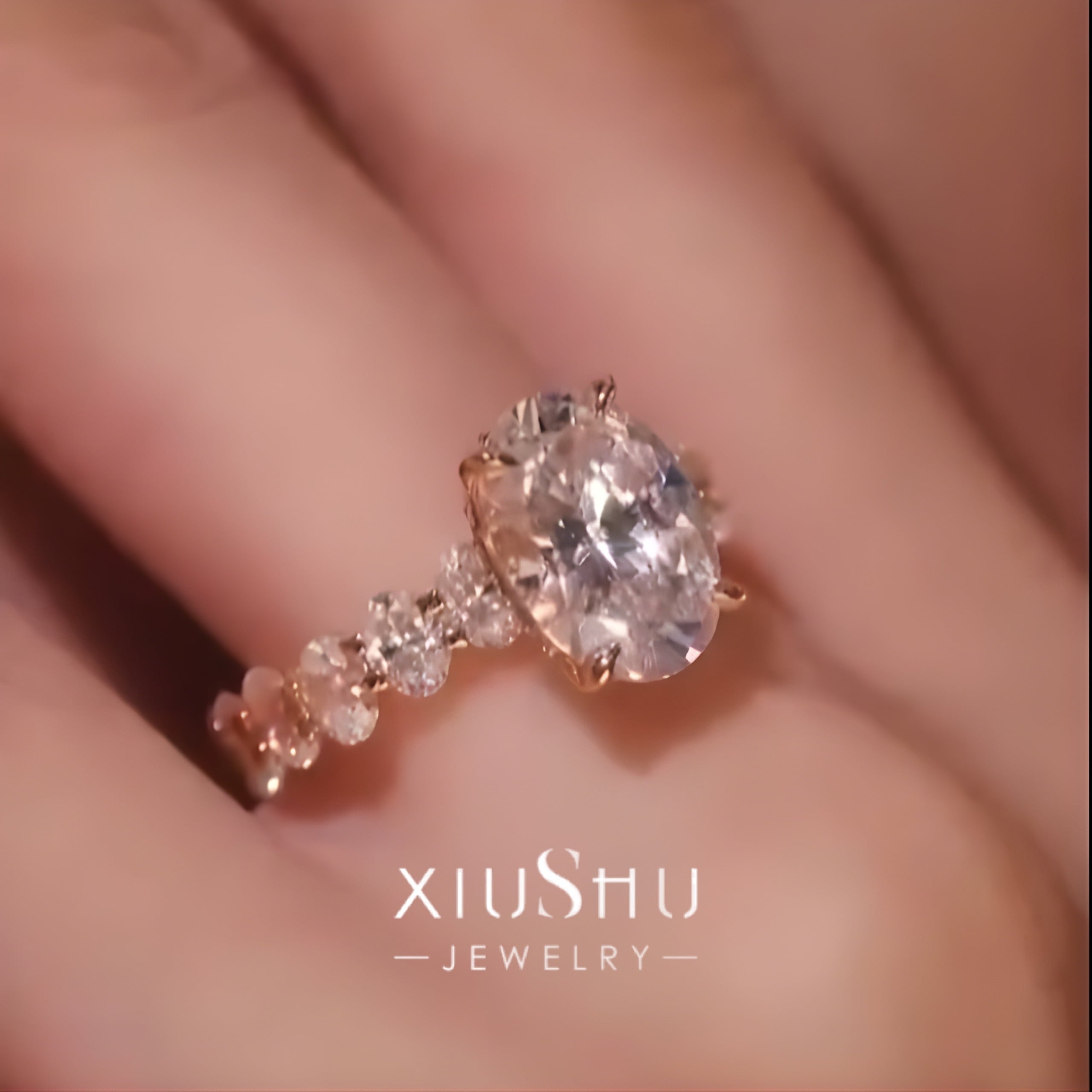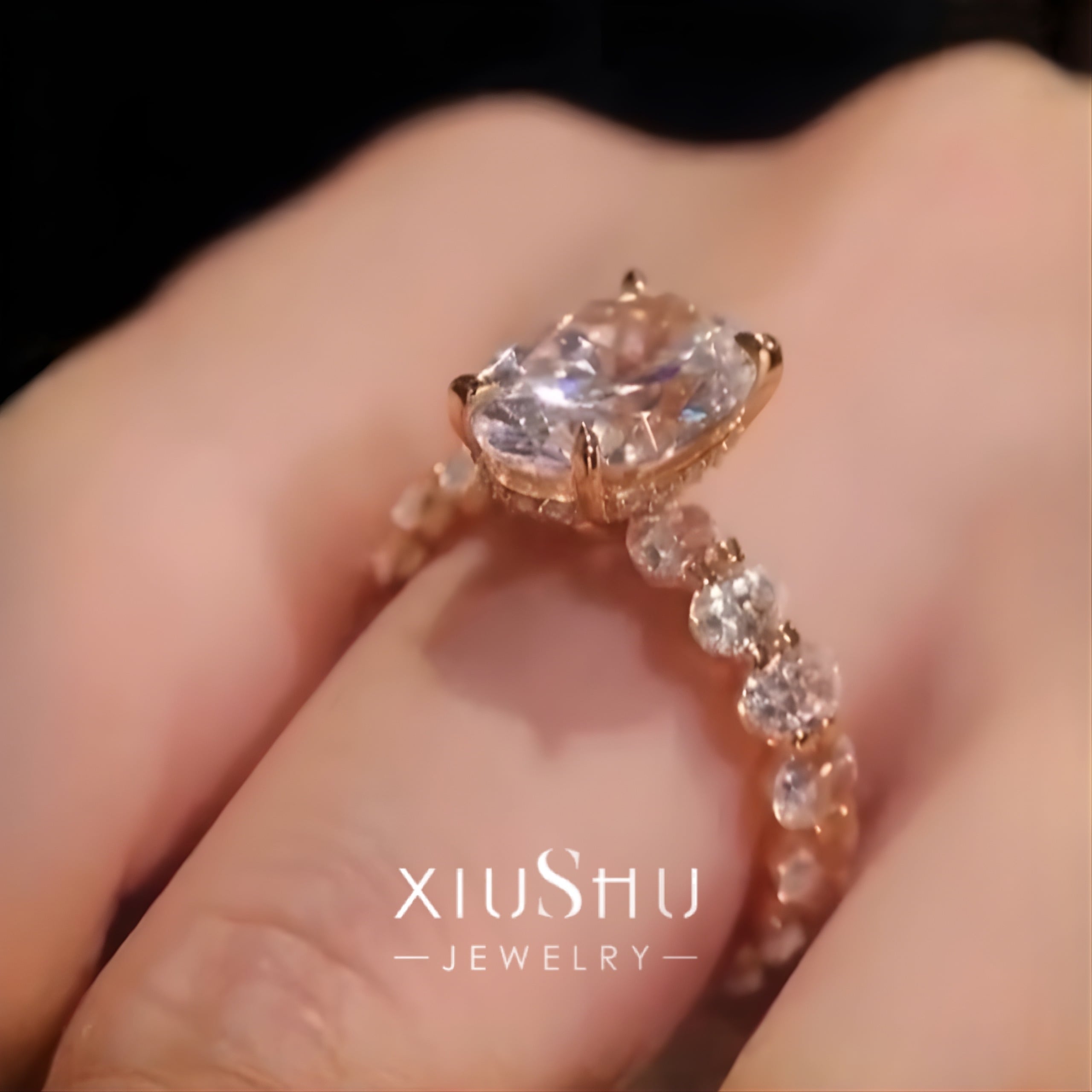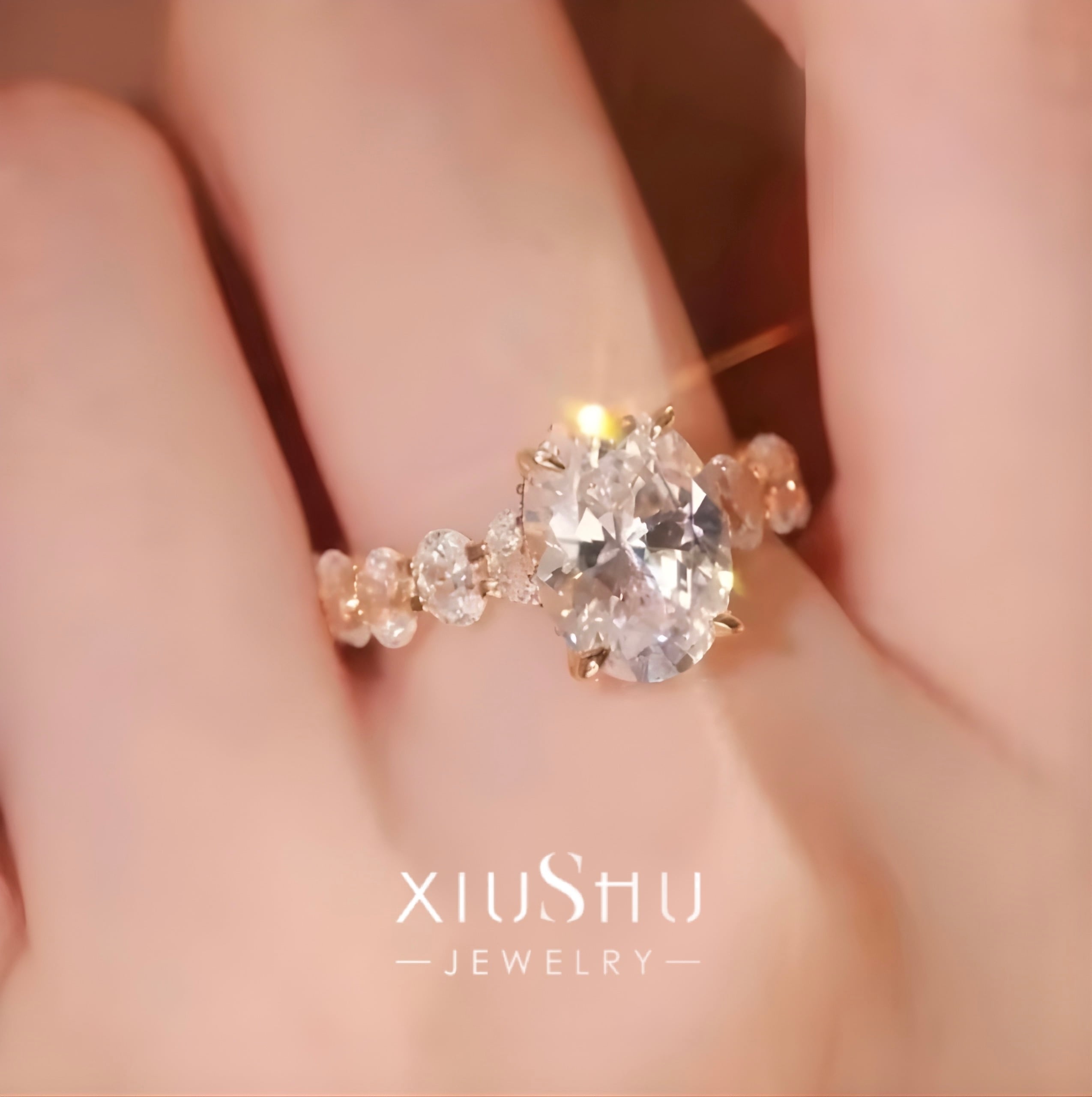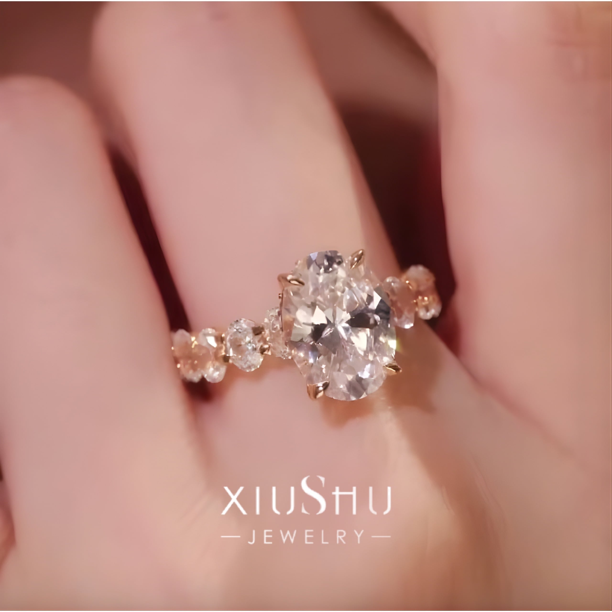 オーバル 高炭素ダイヤモンド キラキラ ゴージャス リング 指輪 ハイカーボンダイヤモンド ホワイト レトロ S925 シルバー925 シャンパン ゴールドメッキ ピンク エタニティリング