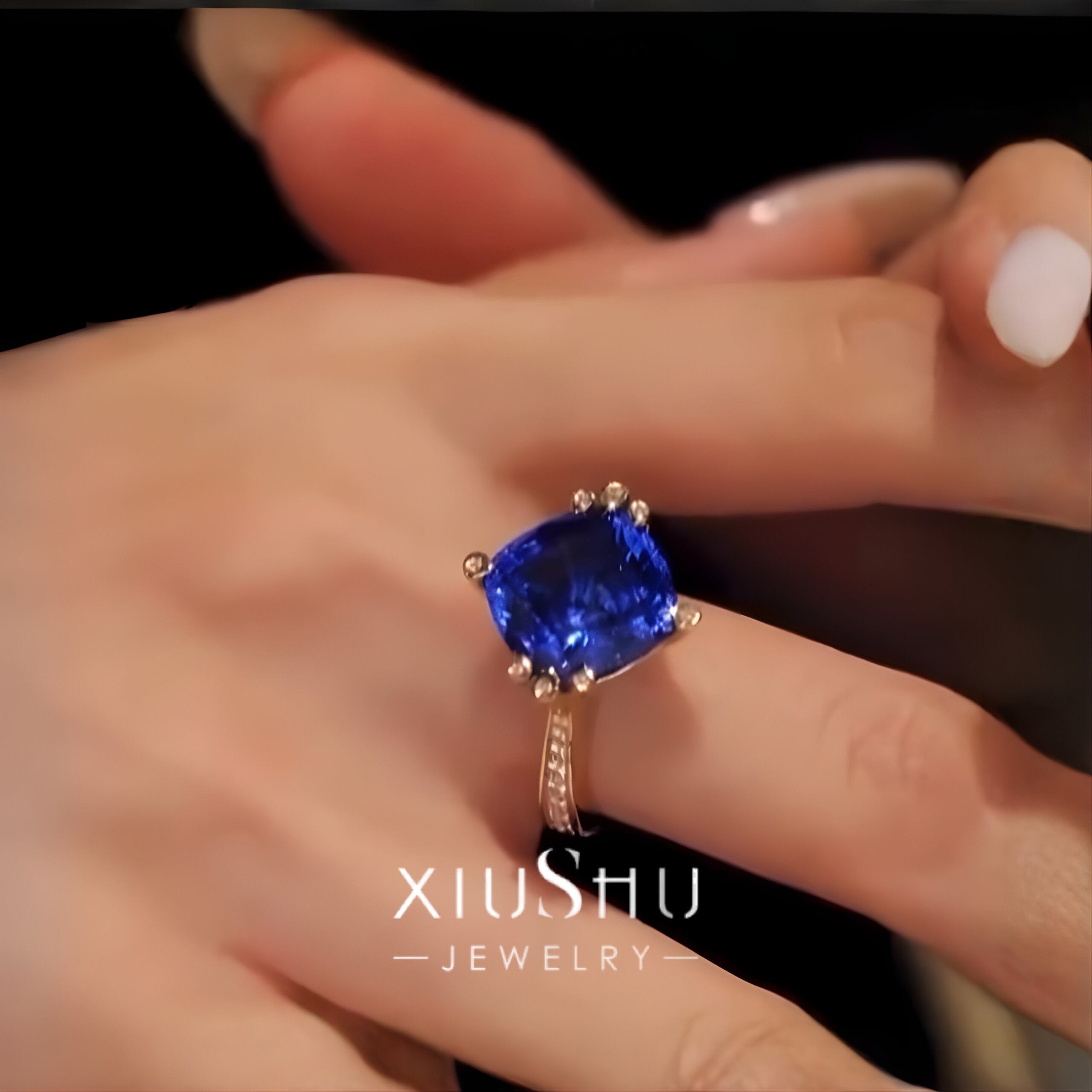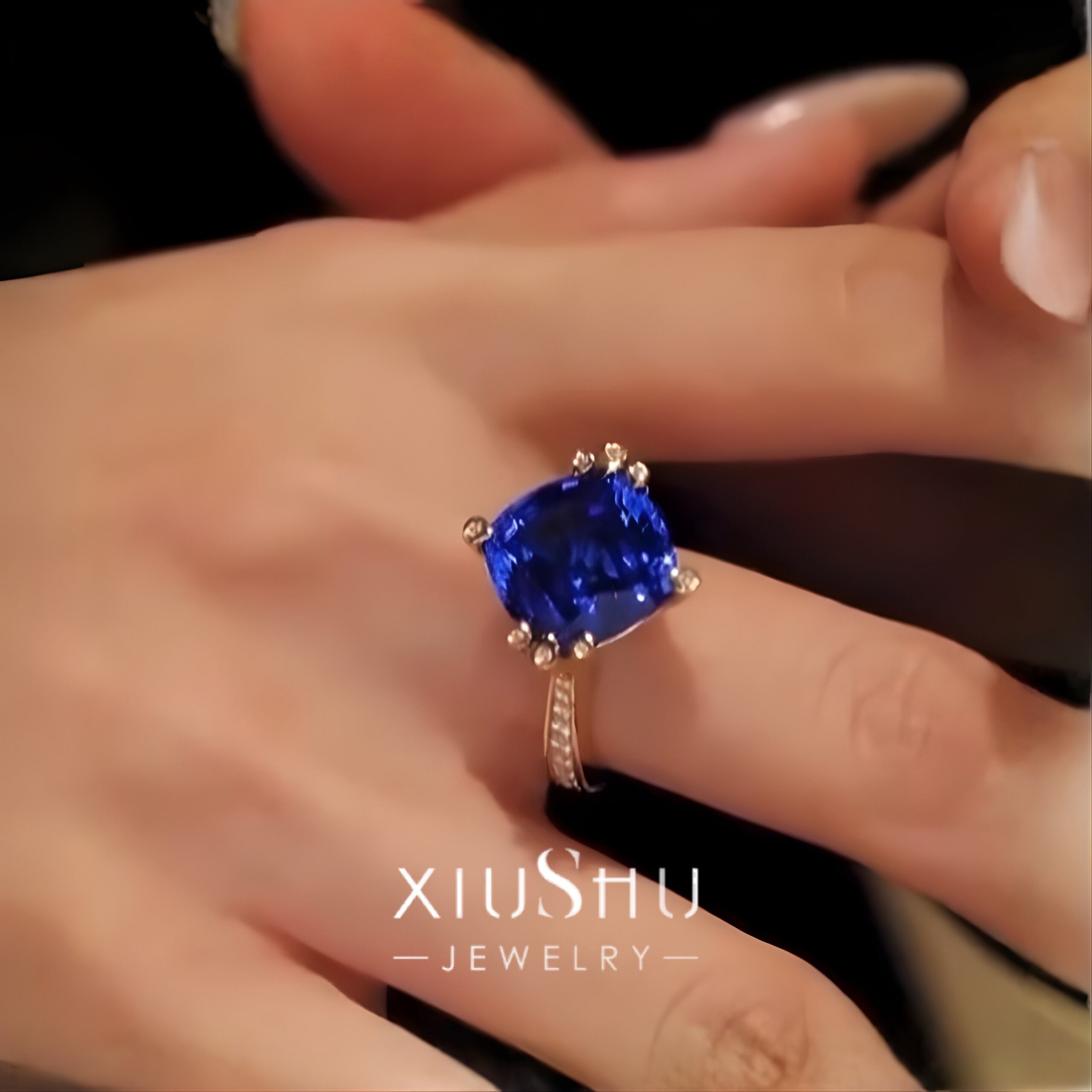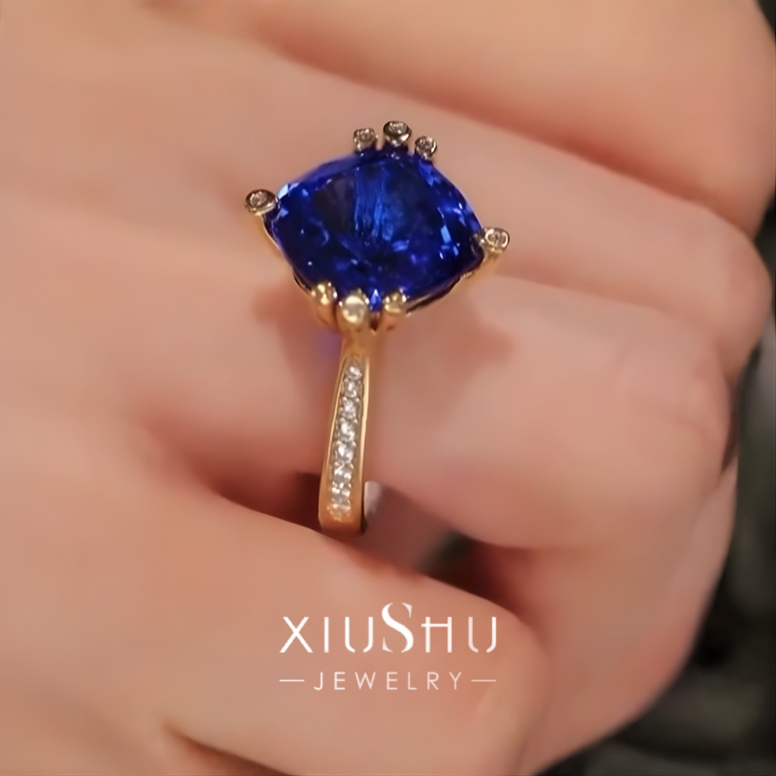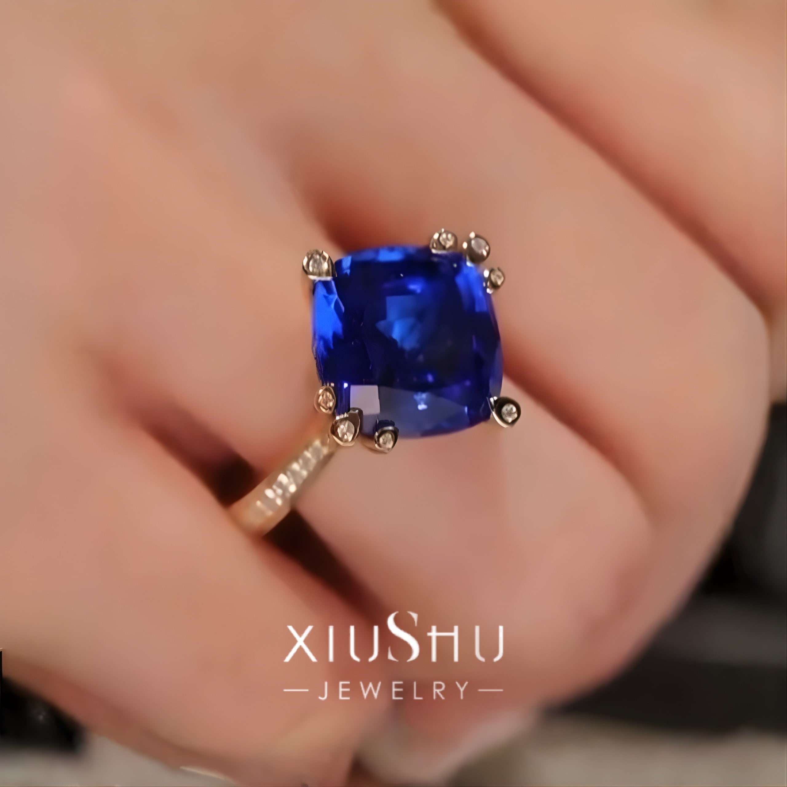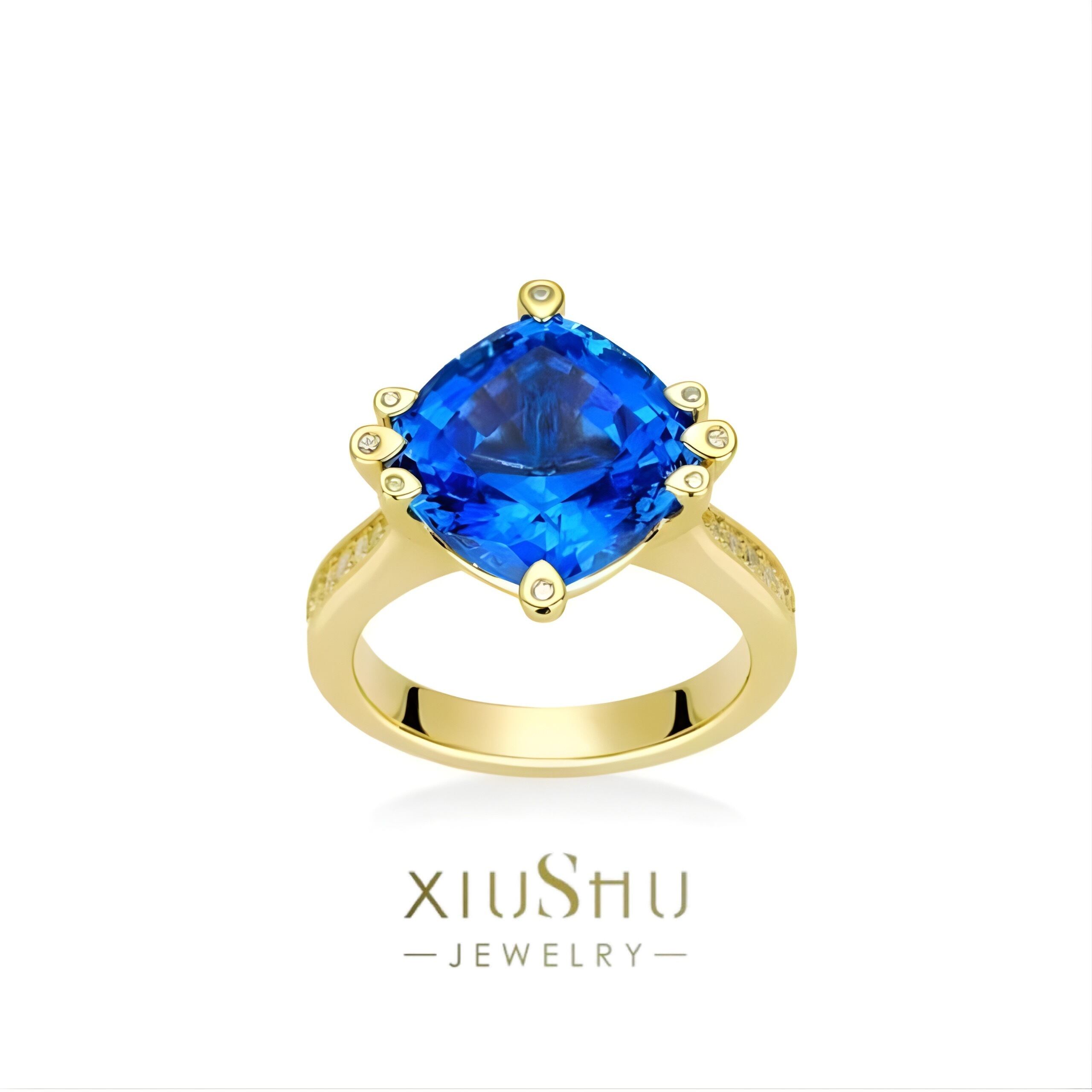 人工サファイア 高炭素ダイヤモンド キラキラ ゴージャス リング 指輪 ハイカーボンダイヤモンド ホワイト レトロ S925 シルバー925 ブルー 青 ゴールドメッキ スクエア