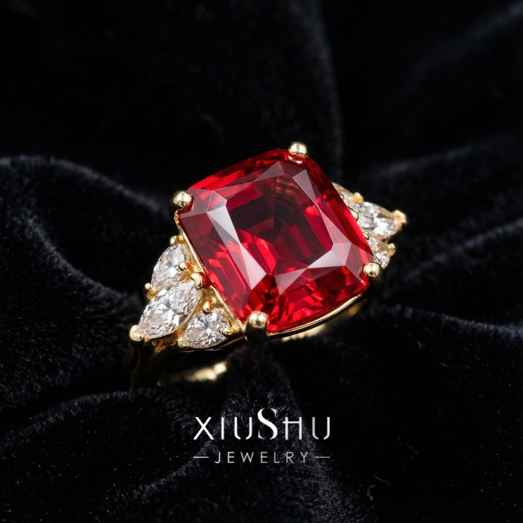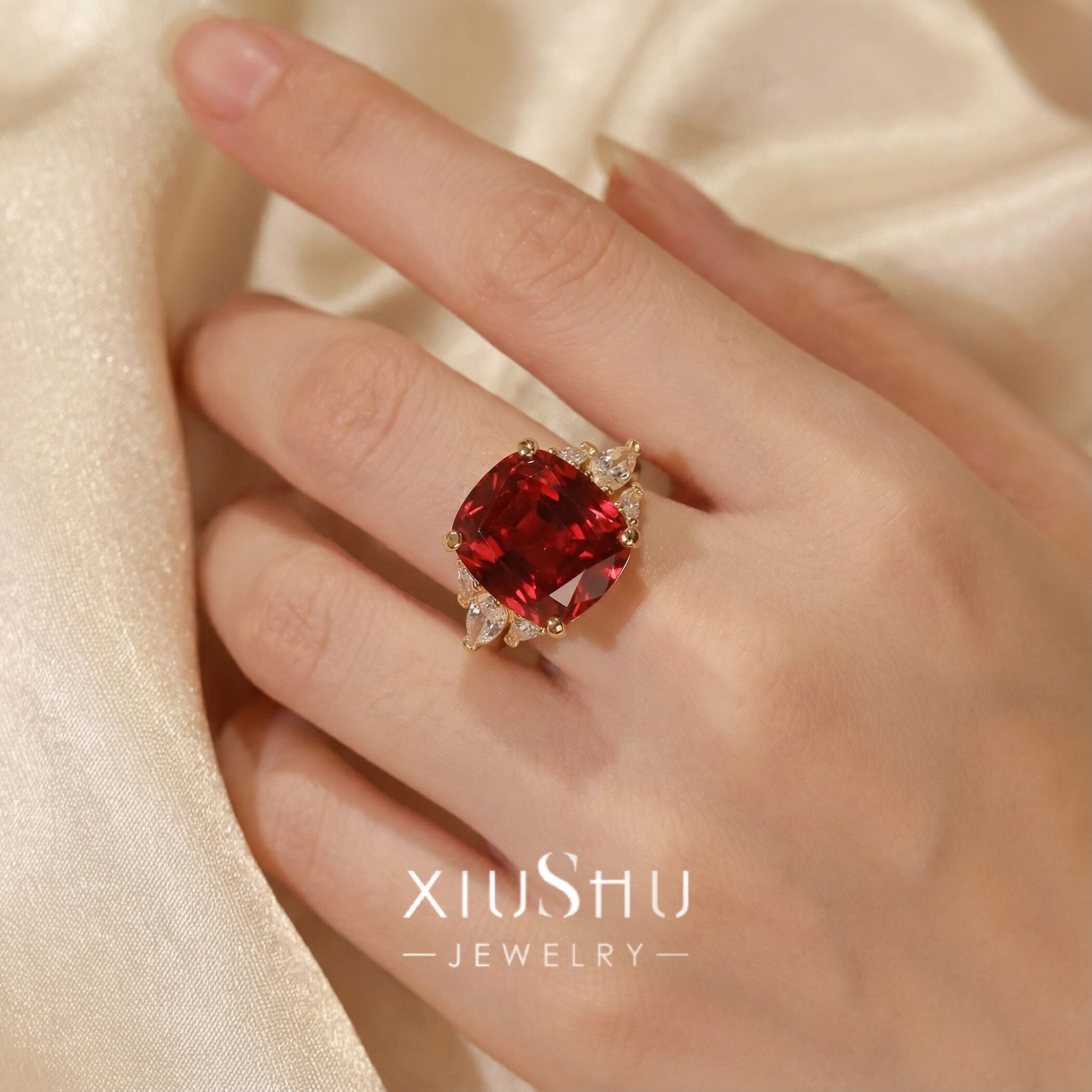 人工ルビー 高炭素ダイヤモンド キラキラ ゴージャス リング 指輪 ハイカーボンダイヤモンド ホワイト レトロ S925 シルバー925 ゴールドメッキ レッド 赤 マーキスカット