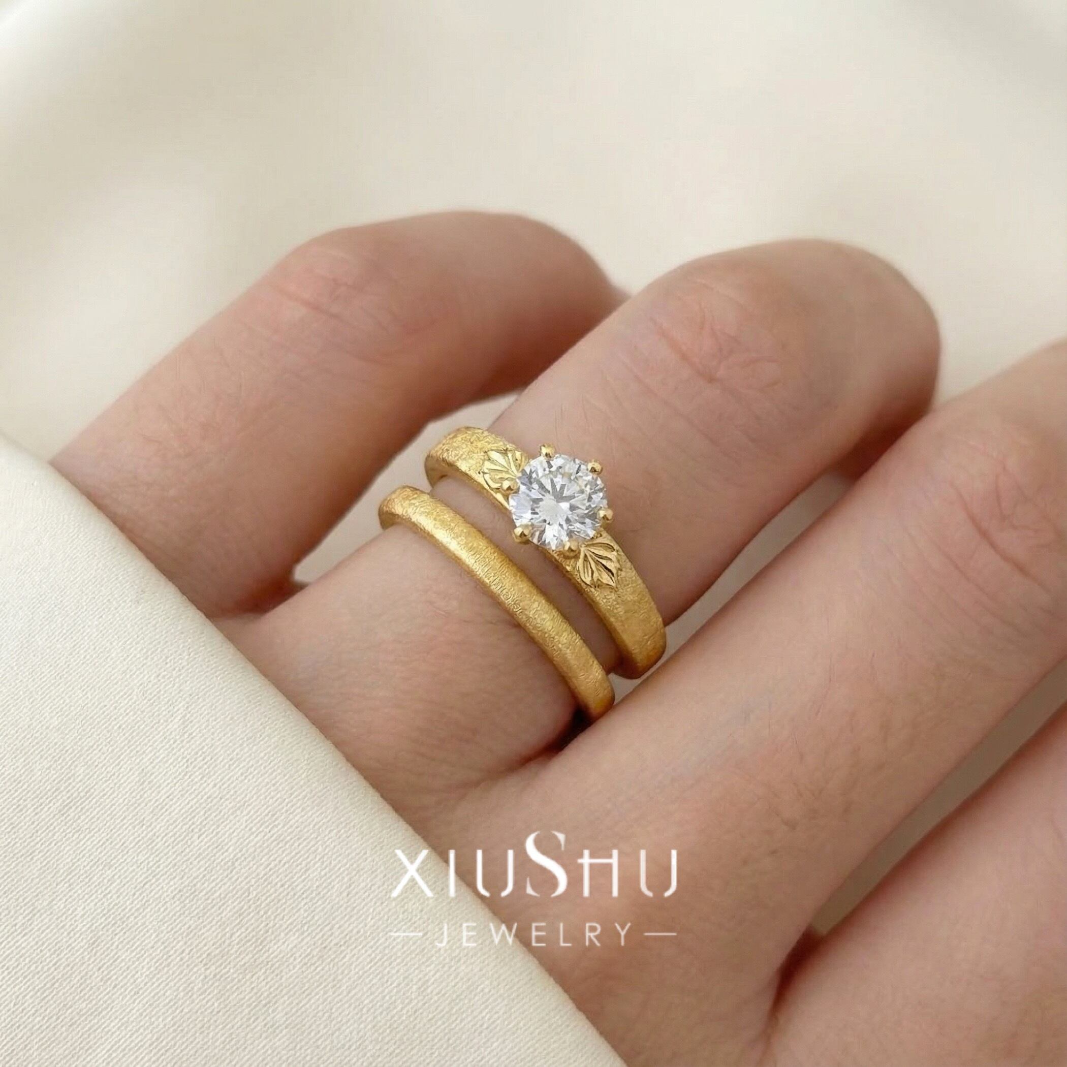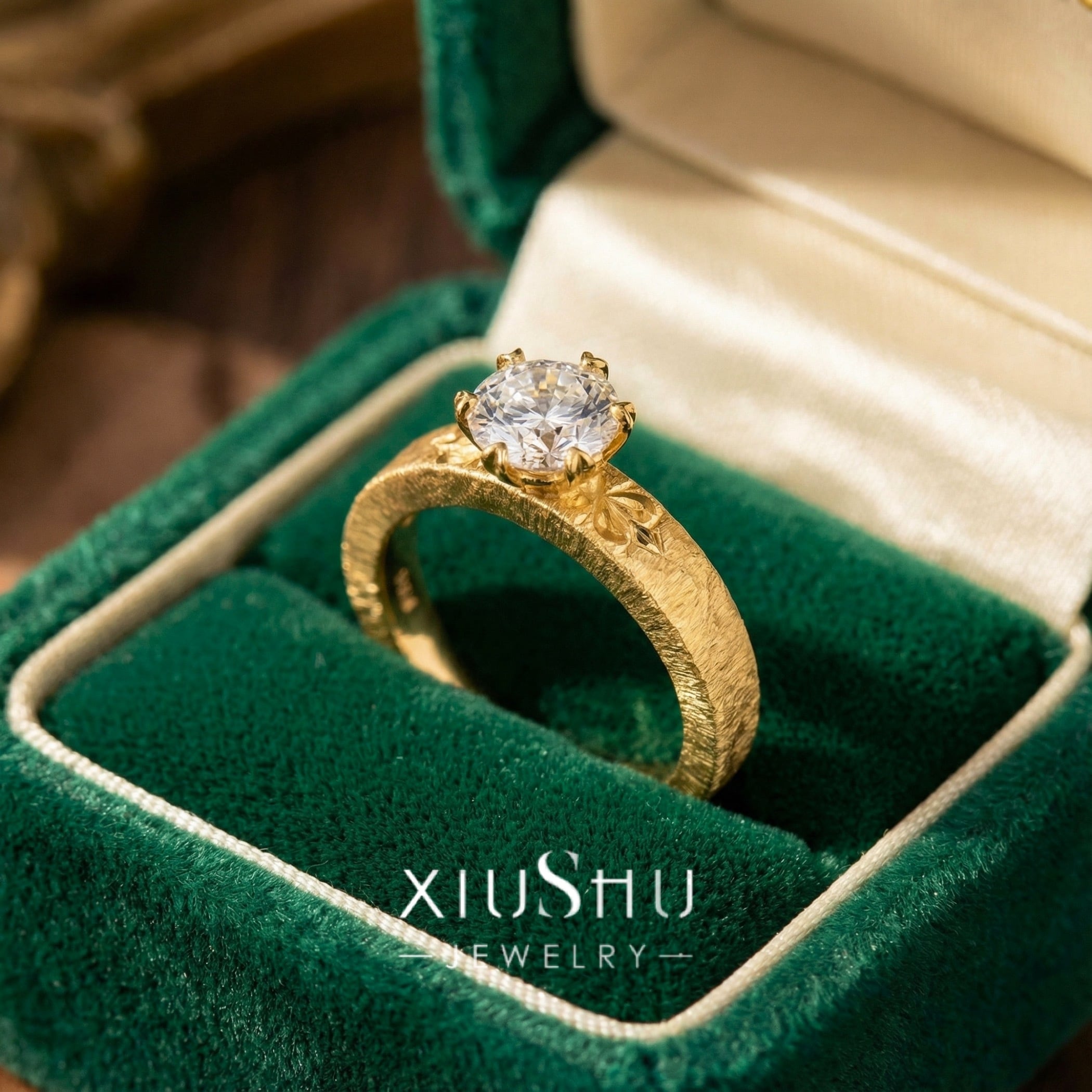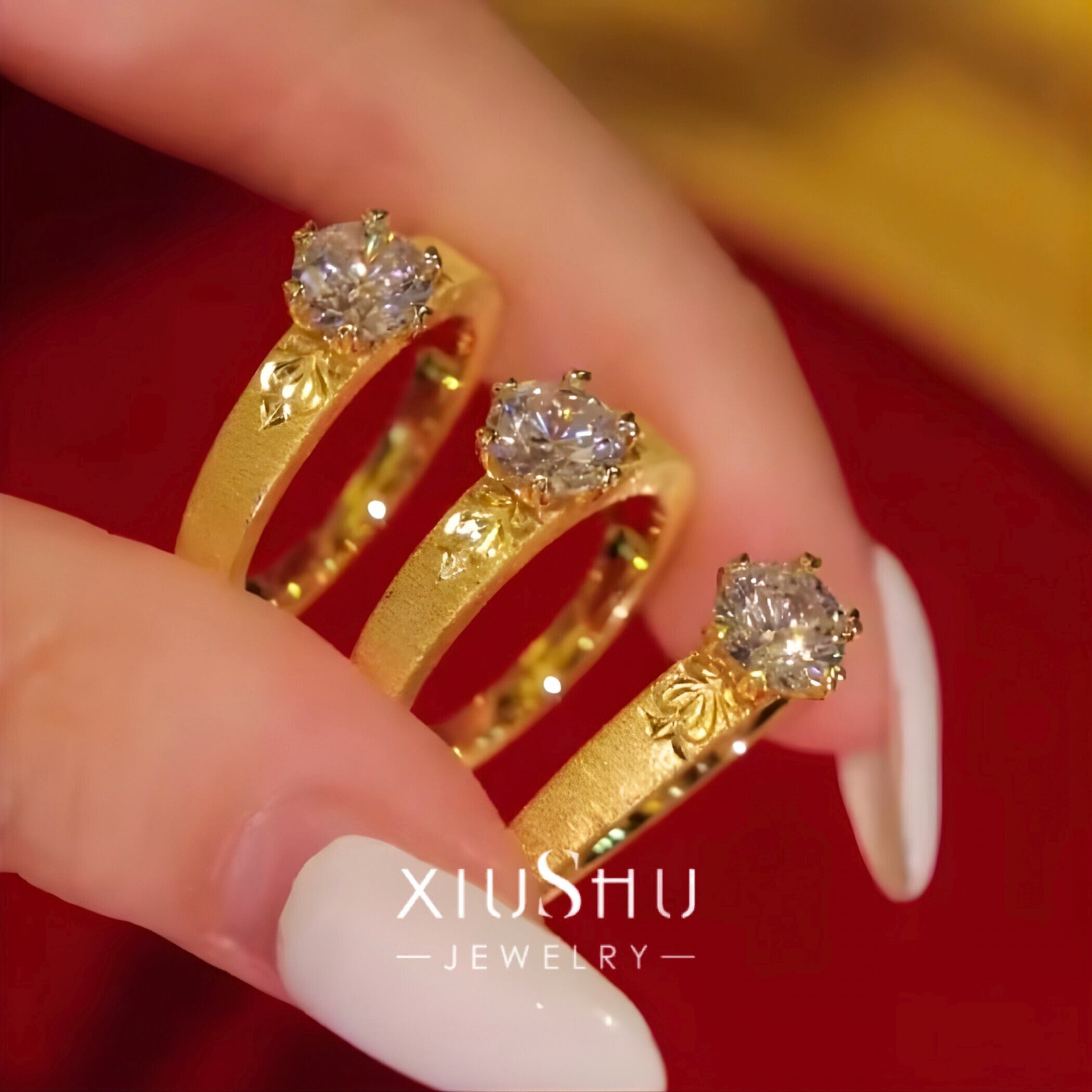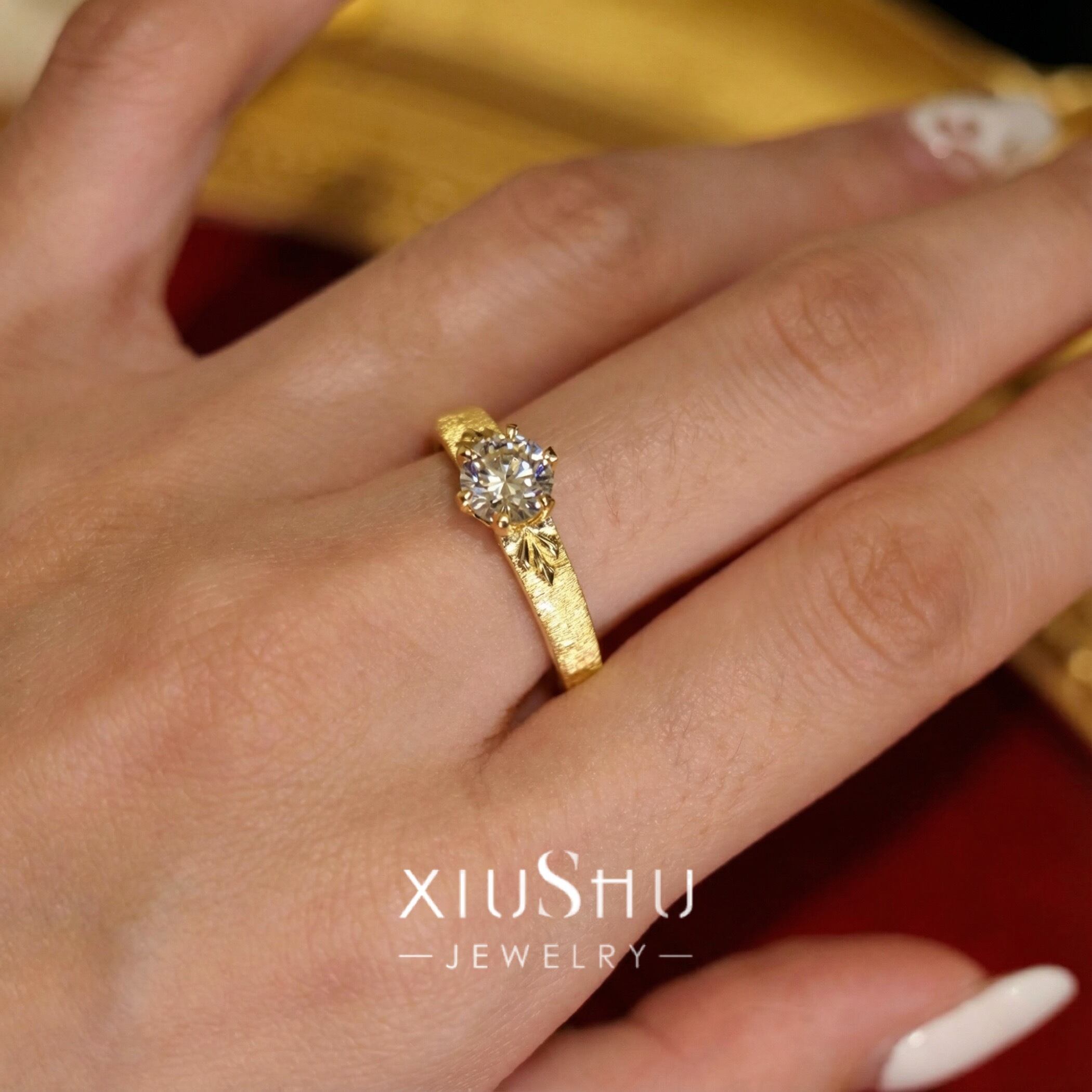 ヘアライン マット 高炭素ダイヤモンド キラキラ ゴージャス リング 指輪 ハイカーボンダイヤモンド ホワイト レトロ S925 シルバー925 ゴールドメッキ ラウンド 中世風 ブラッシュ 彫刻