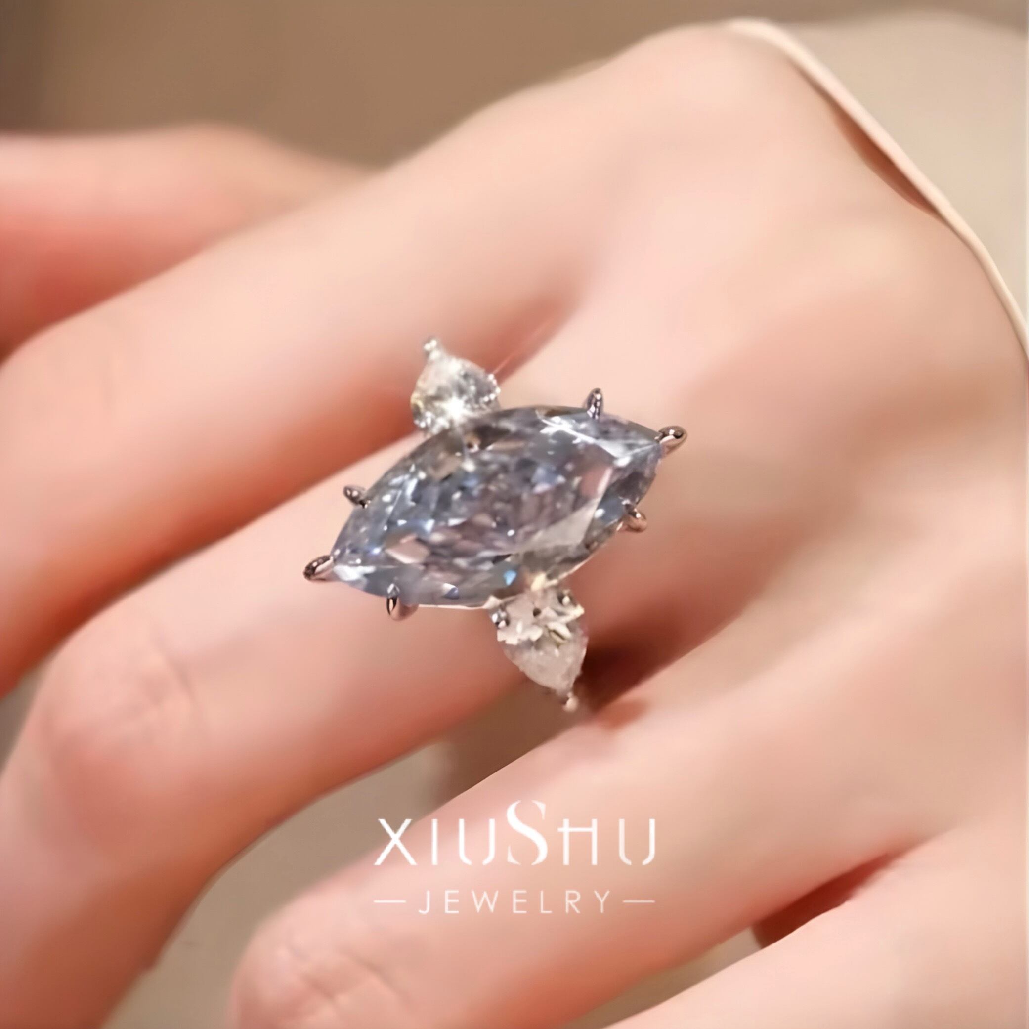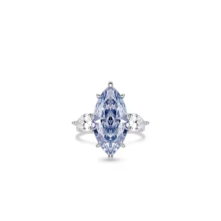 ブルー マーキスカット 高炭素ダイヤモンド キラキラ ゴージャス リング 指輪 ハイカーボンダイヤモンド ホワイト レトロ S925 シルバー925 高級感 クール 青 ビッグ