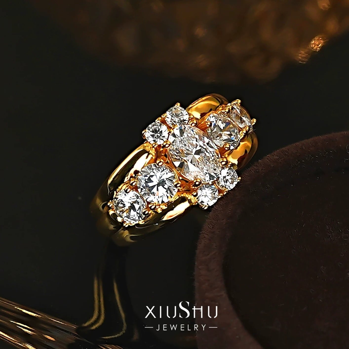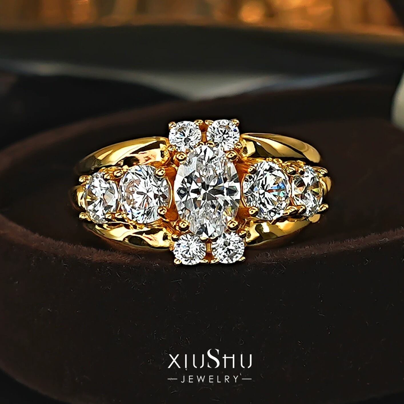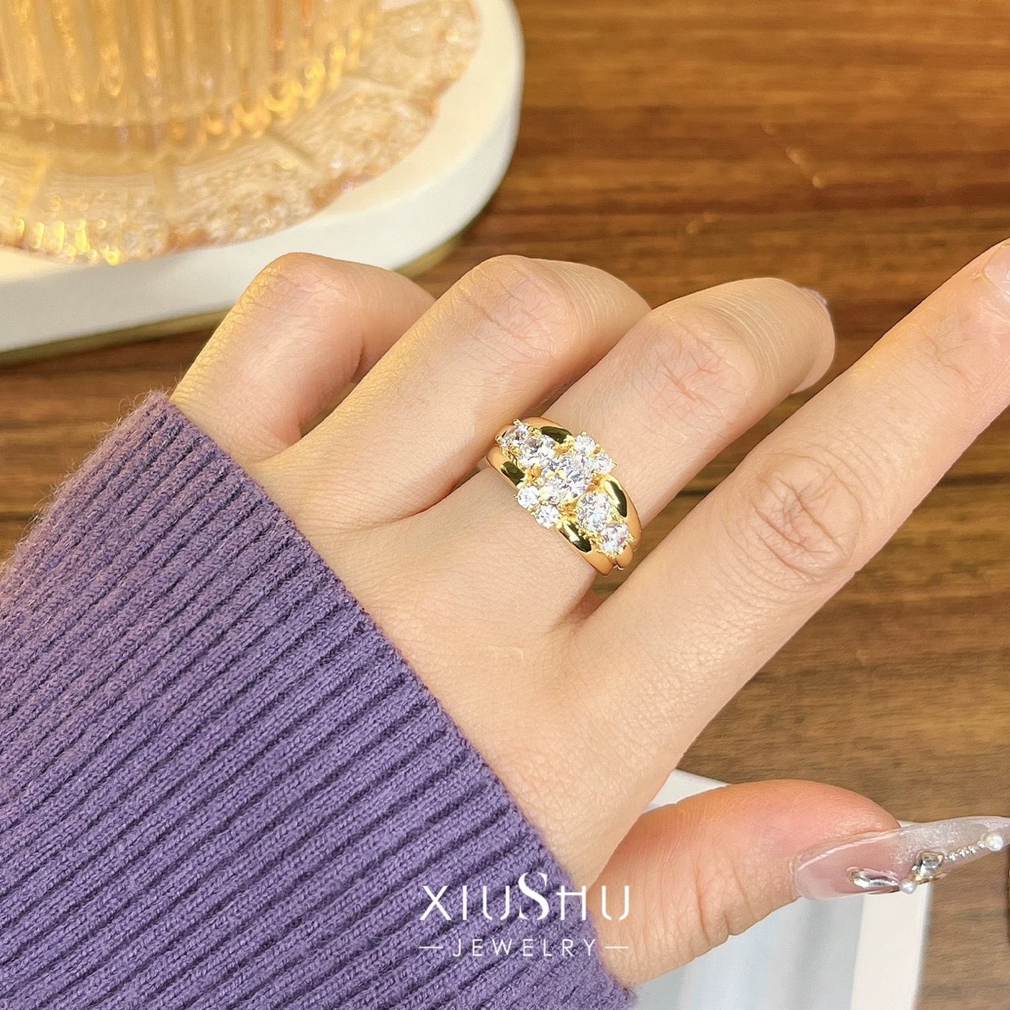 ボリューム フラワー 高炭素ダイヤモンド キラキラ ゴージャス 指輪 ハイカーボンダイヤモンド ホワイト S925 シルバー925 リング ビッグ ワイドリング クール 花 レトロ イエローゴールドメッキ