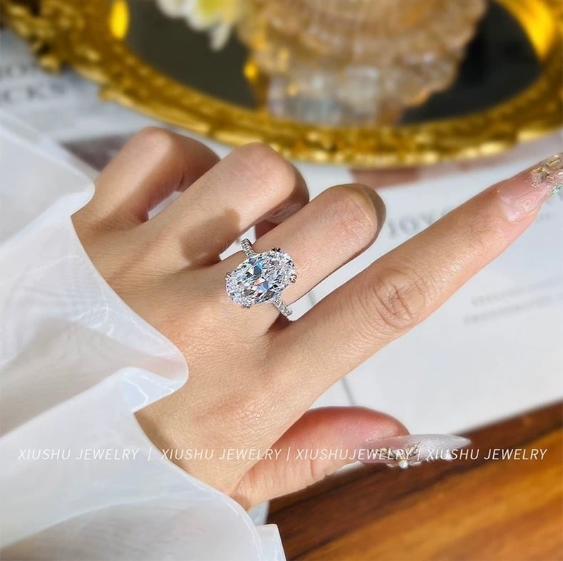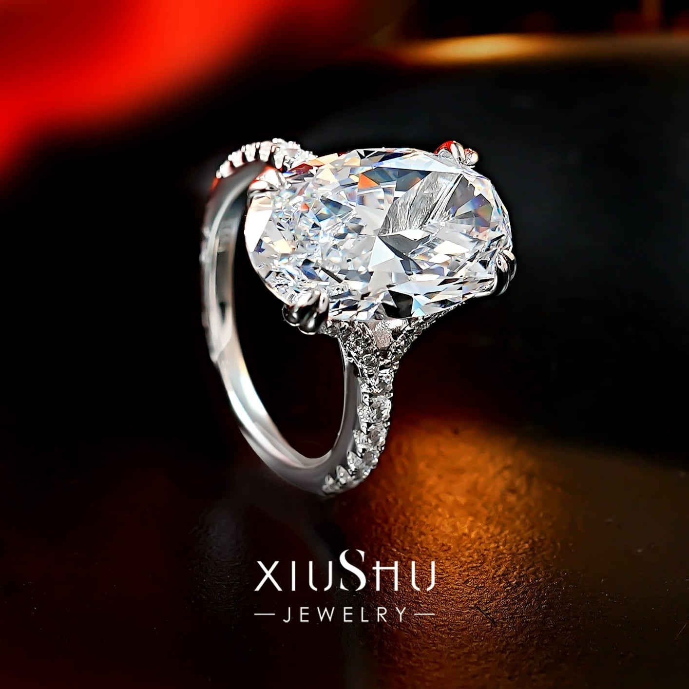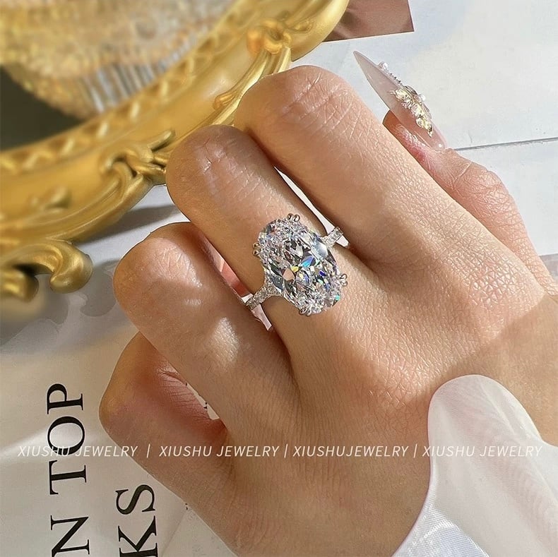 11ct オーバル 高炭素ダイヤモンド キラキラ ゴージャス 指輪 ハイカーボンダイヤモンド ホワイト エンゲージリング S925 シルバー925 リング ビッグ エレガント