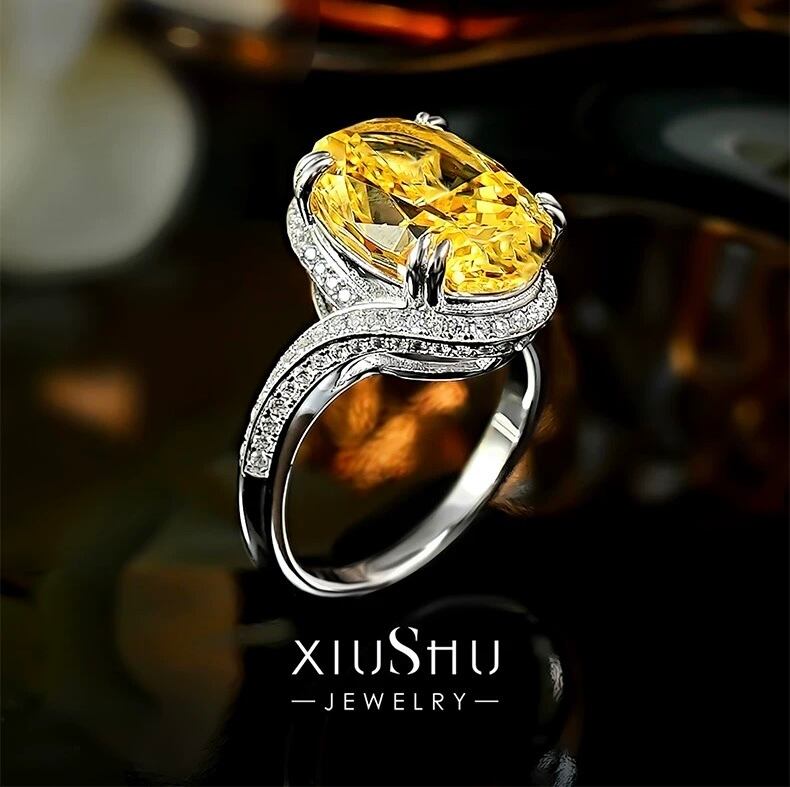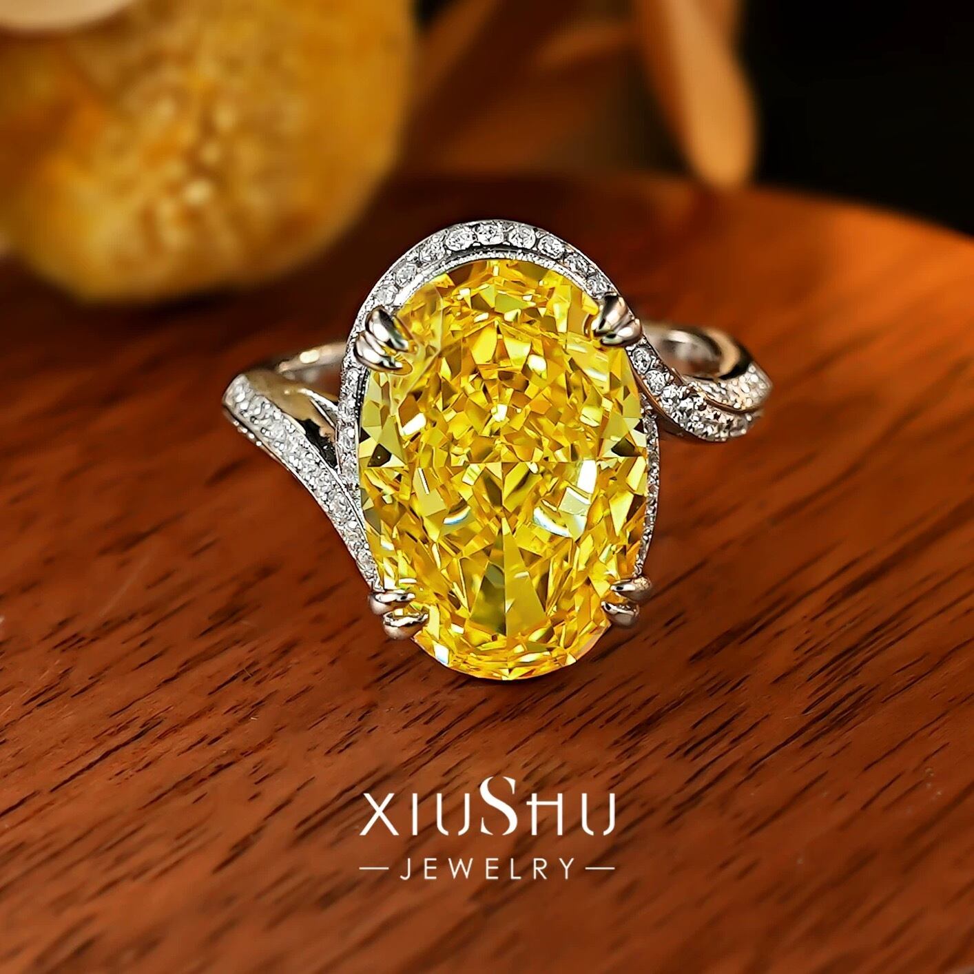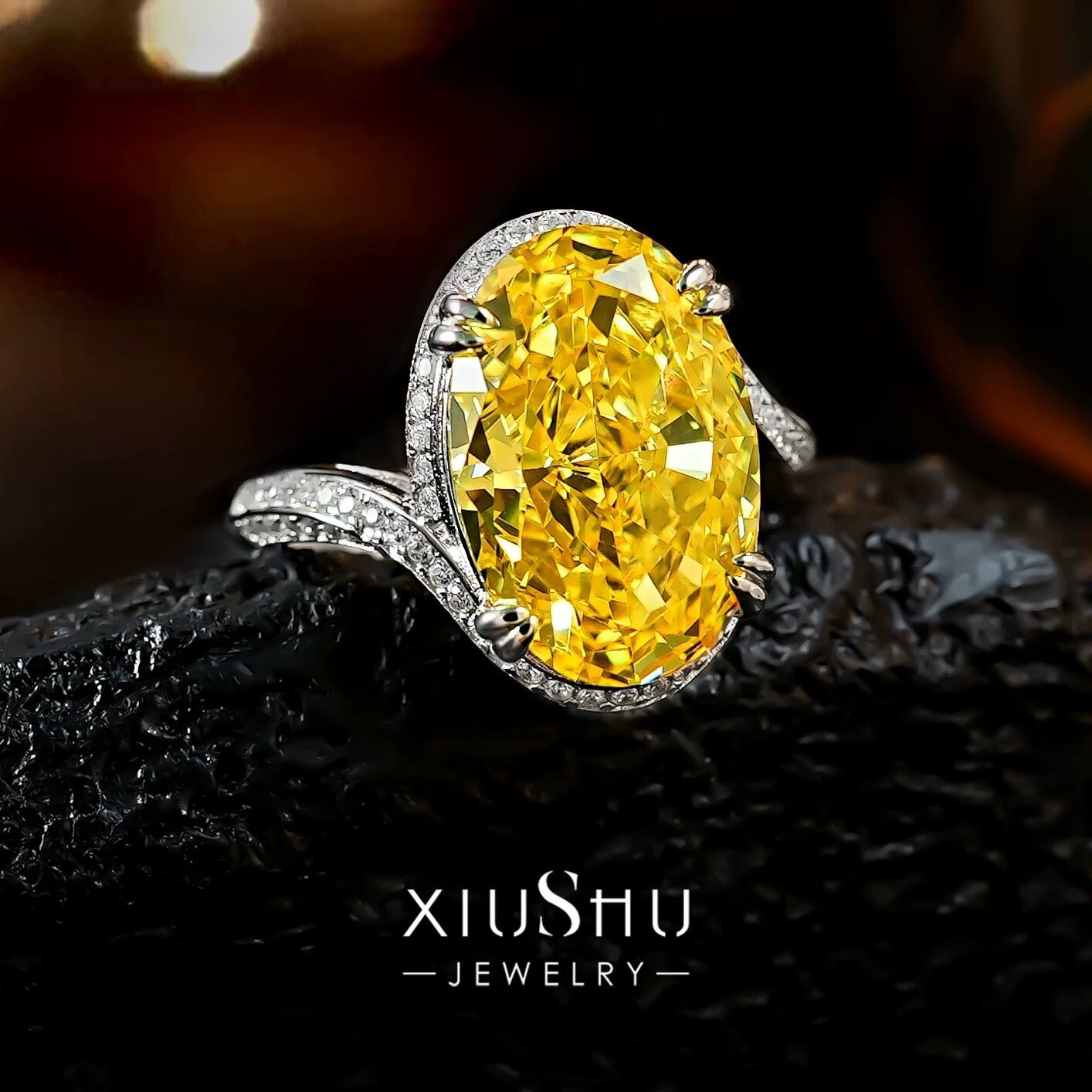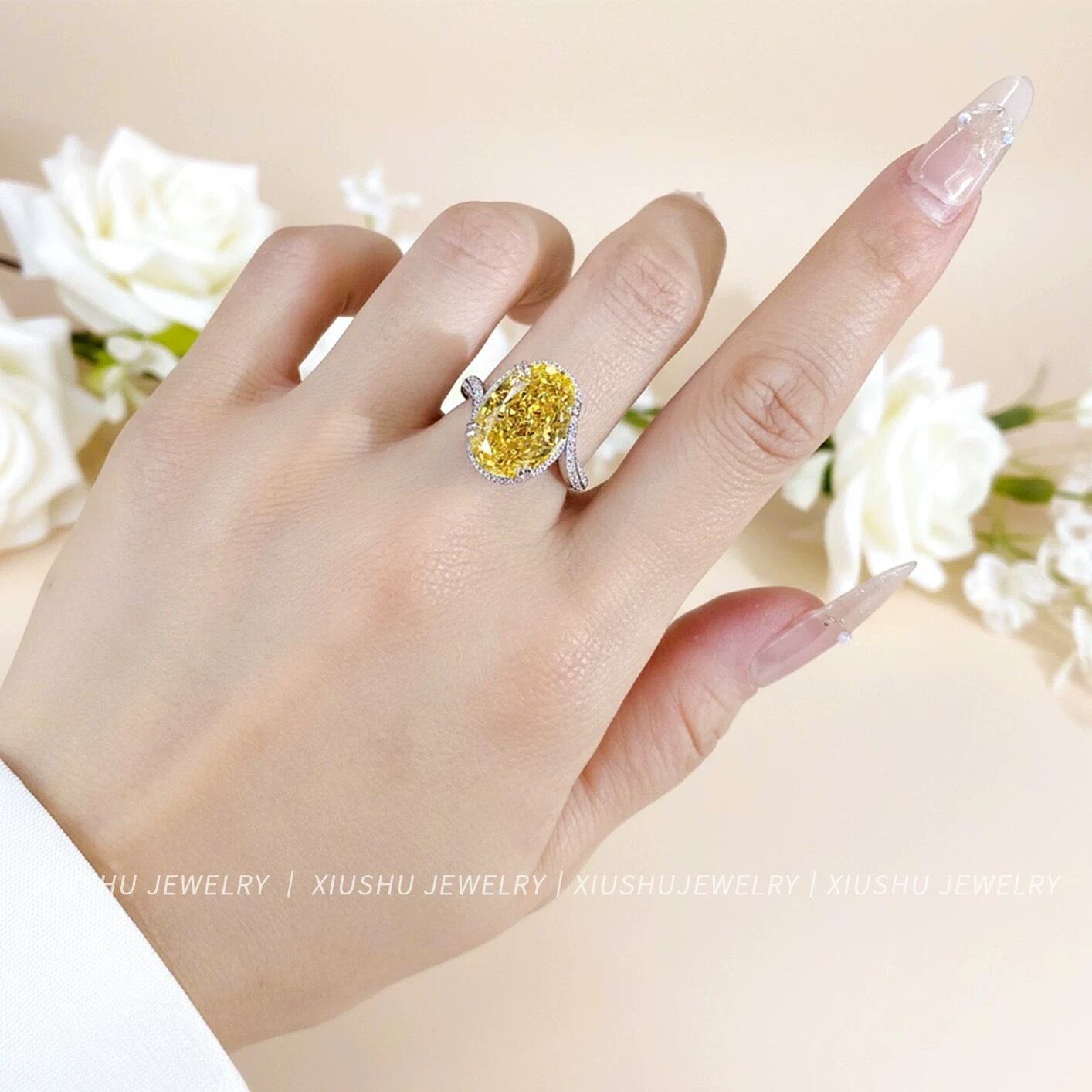 10ct イエロー オーバル 高炭素ダイヤモンド キラキラ ゴージャス 指輪 ハイカーボンダイヤモンド ホワイト S925 シルバー925 リング ビッグ エレガント 黄色 高級感