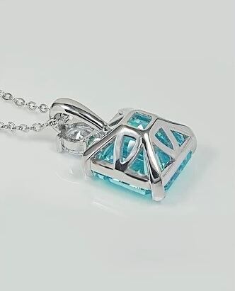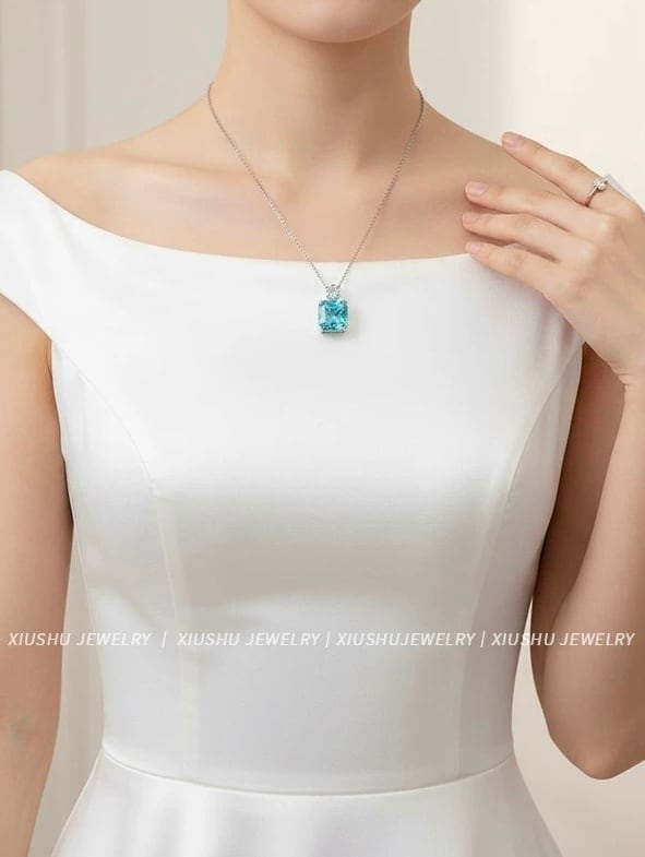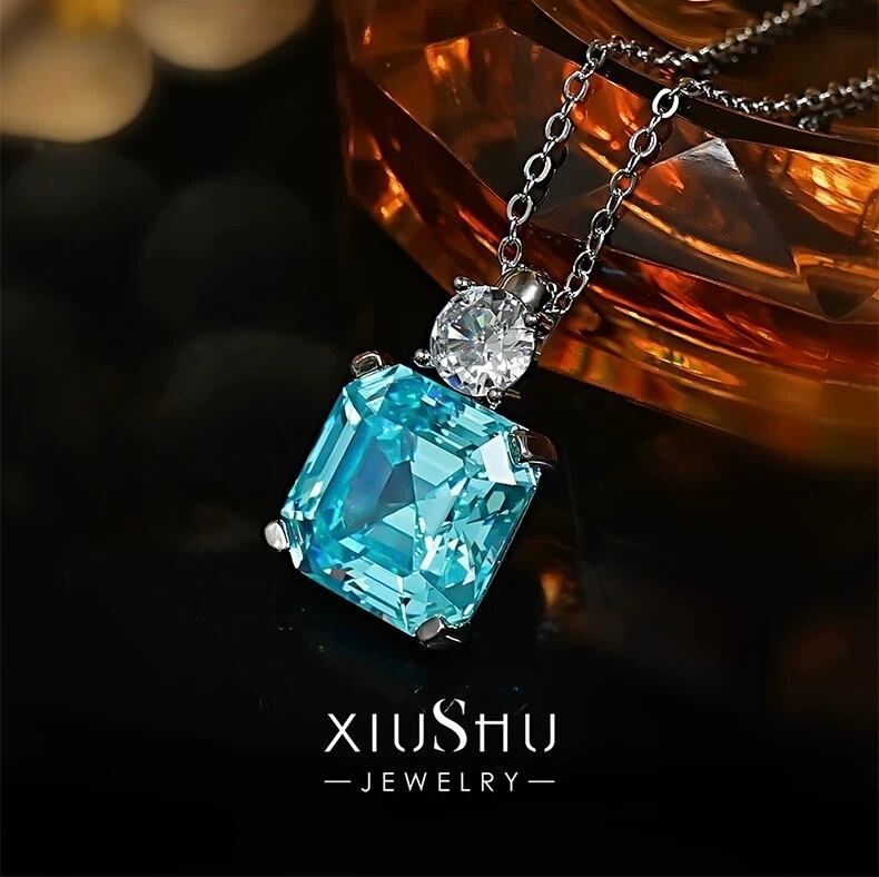 16ct 人工ブルートパーズ シュガーキューブ 高炭素ダイヤモンド キラキラ ゴージャス ネックレス ハイカーボンダイヤモンド ビッグ レトロ クール 青色 スクエア パフュームボトルデザイン 香水瓶