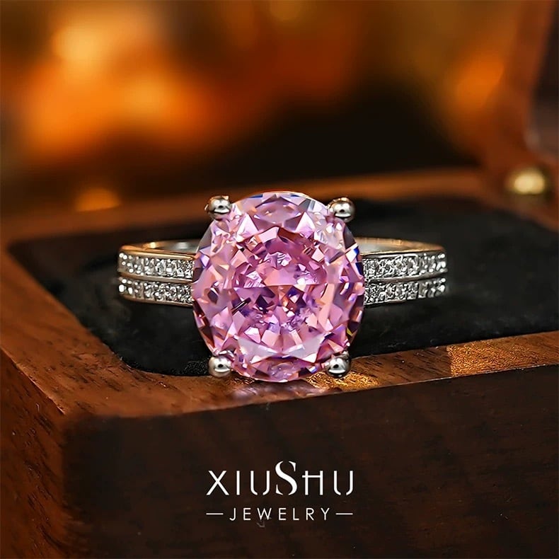 グレープパープル 6ct 高炭素ダイヤモンド キラキラ ゴージャス ハイカーボンダイヤモンド ビッグ レトロ リング 指輪 オーバル 紫 ダブルアーム