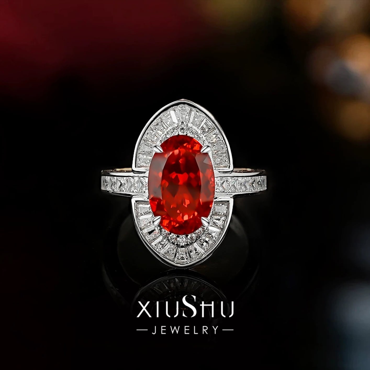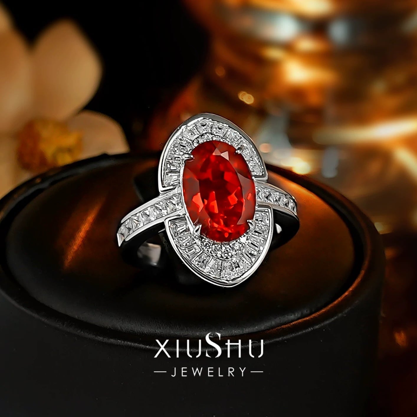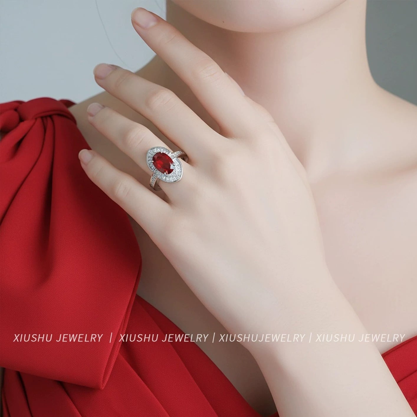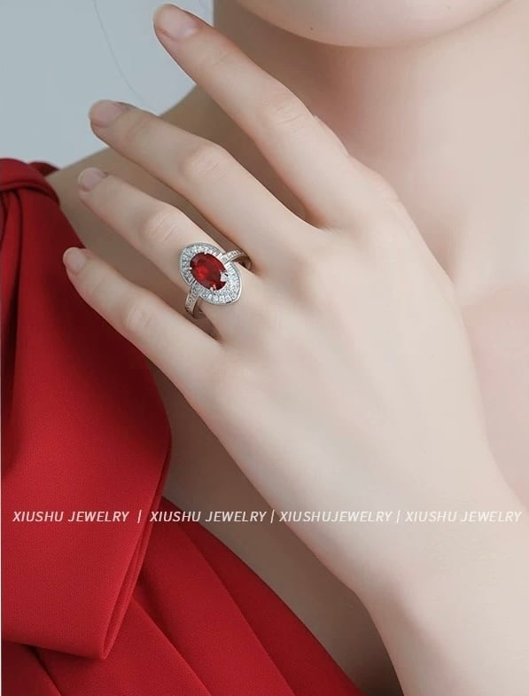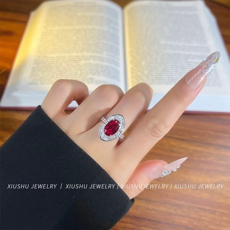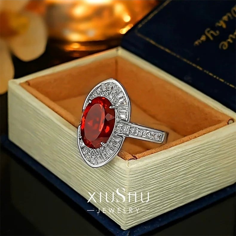 フルファイア 人工ピジョンブラッド ルビー 高炭素ダイヤモンド キラキラ ゴージャス 指輪 ハイカーボンダイヤモンド S925 シルバー925 リング レトロ クール マーキス オーバル レッド 赤 ビッグ ヘイローリング