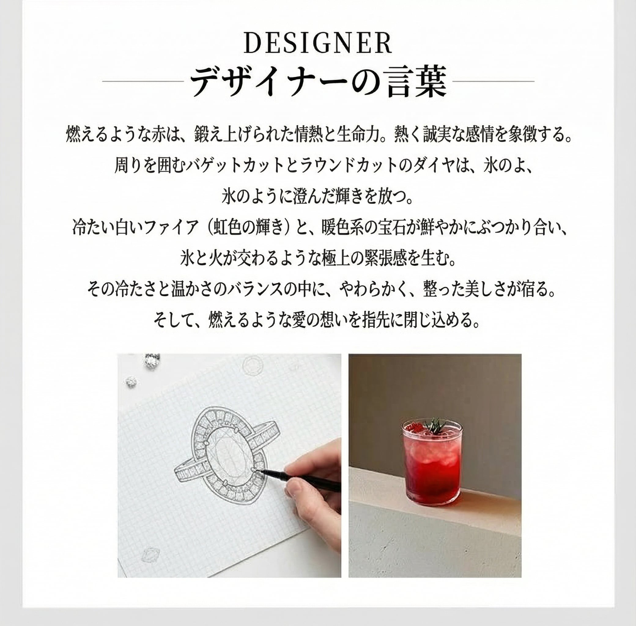 オリジナルの人工ルビーと高炭素ダイヤモンドのリングになります。