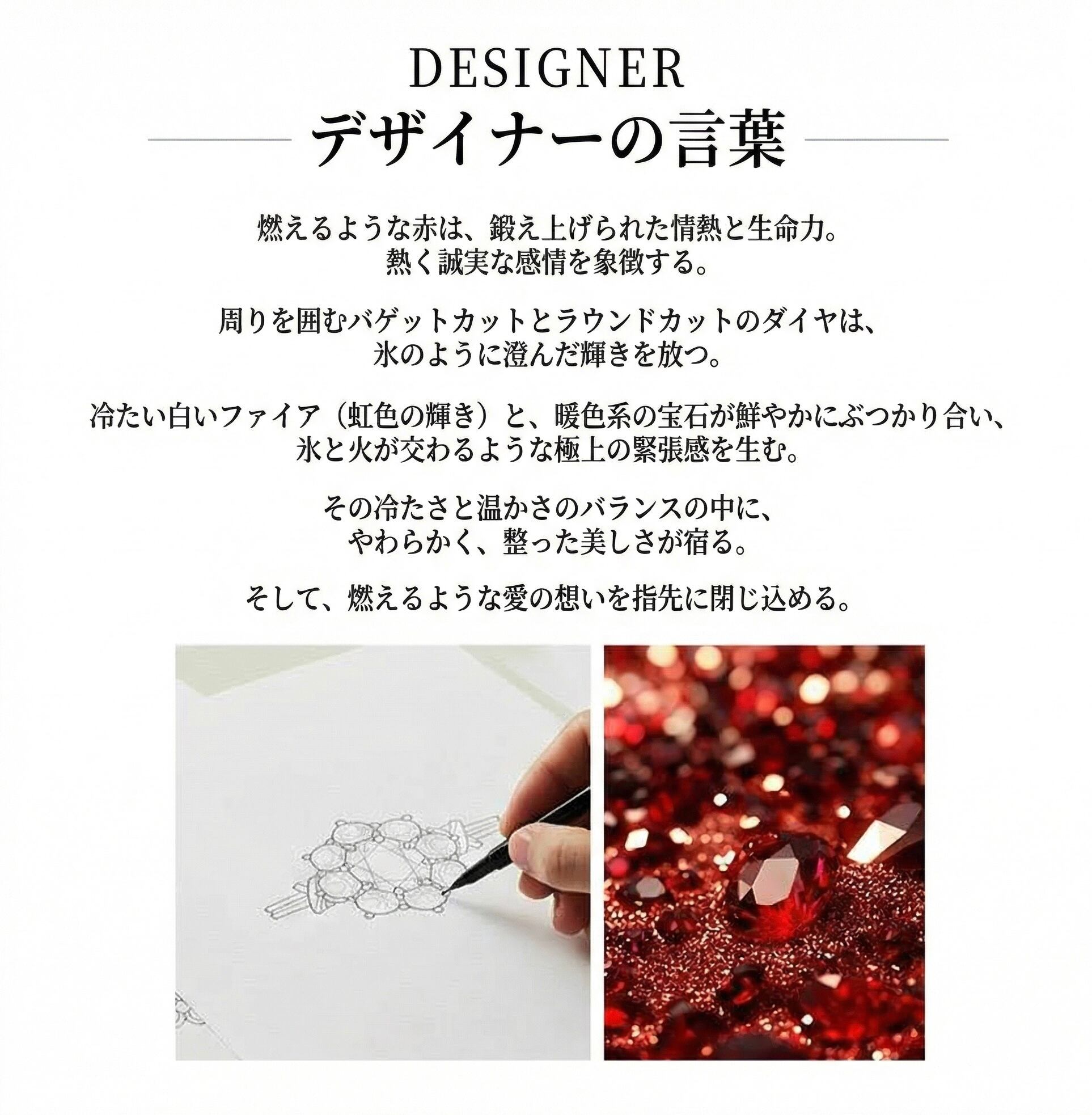 オリジナルの人工ルビーと高炭素ダイヤモンドのリングになります。