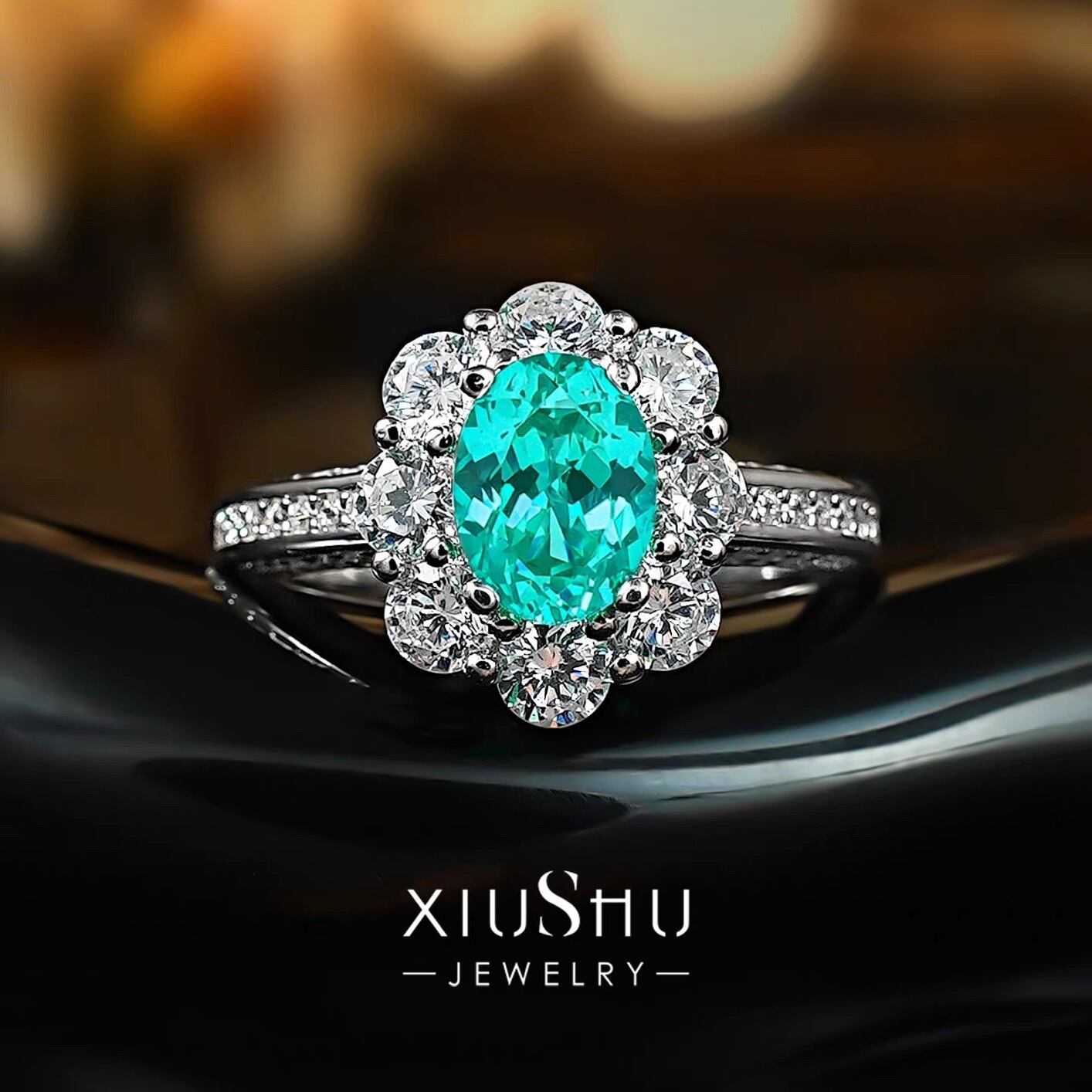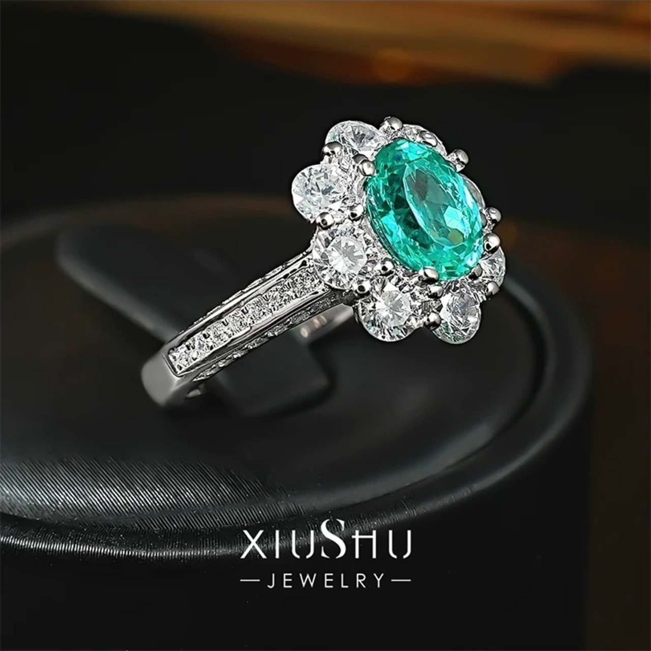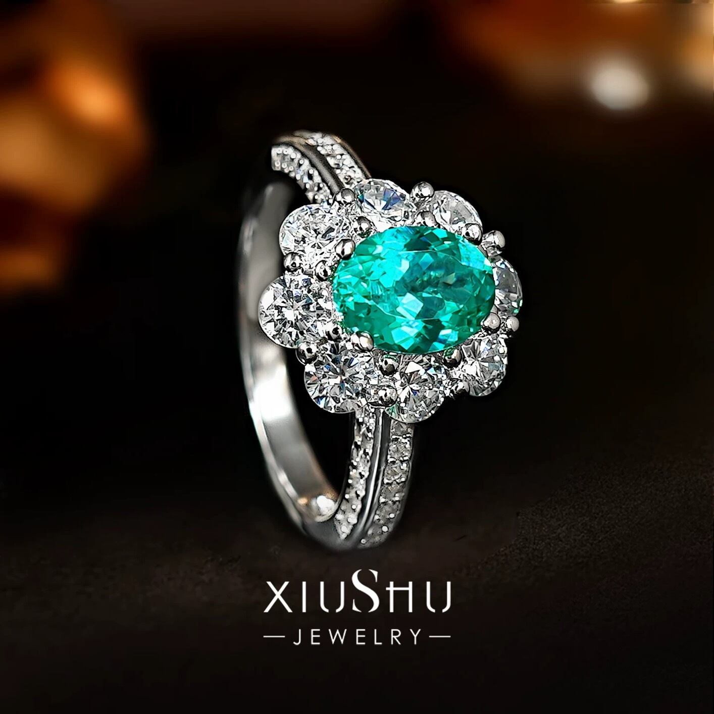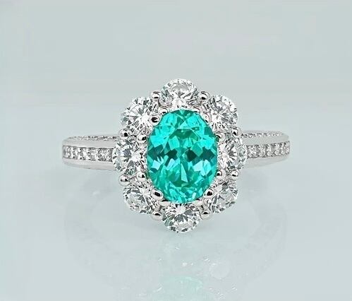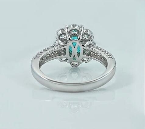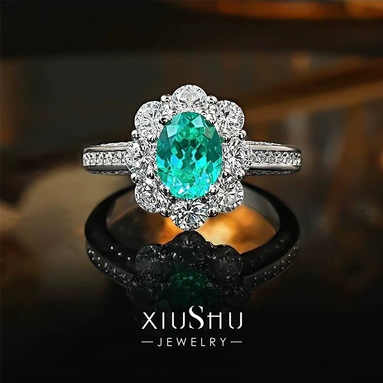 1.5ct 人工パライバトルマリン フラワー 高炭素ダイヤモンド キラキラ ゴージャス 指輪 ハイカーボンダイヤモンド S925 シルバー925 リング レトロ 花 グリーン ブルー ヘイローリング