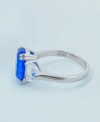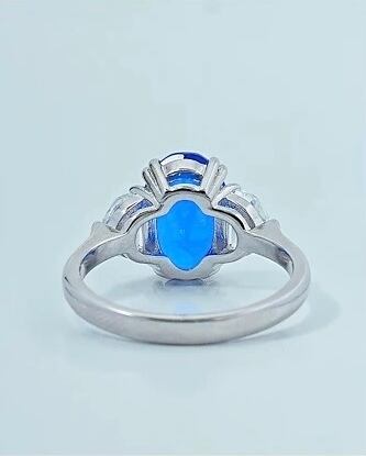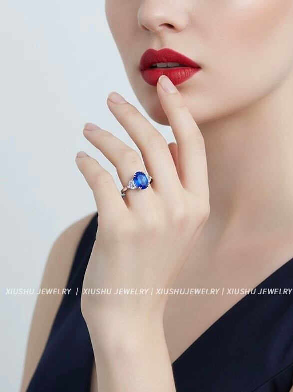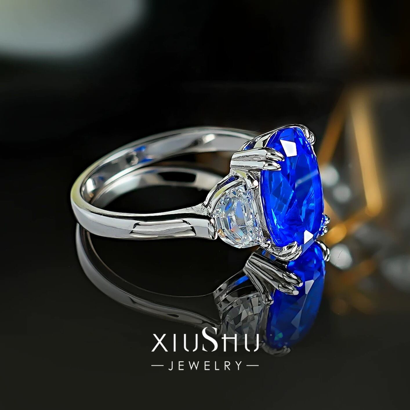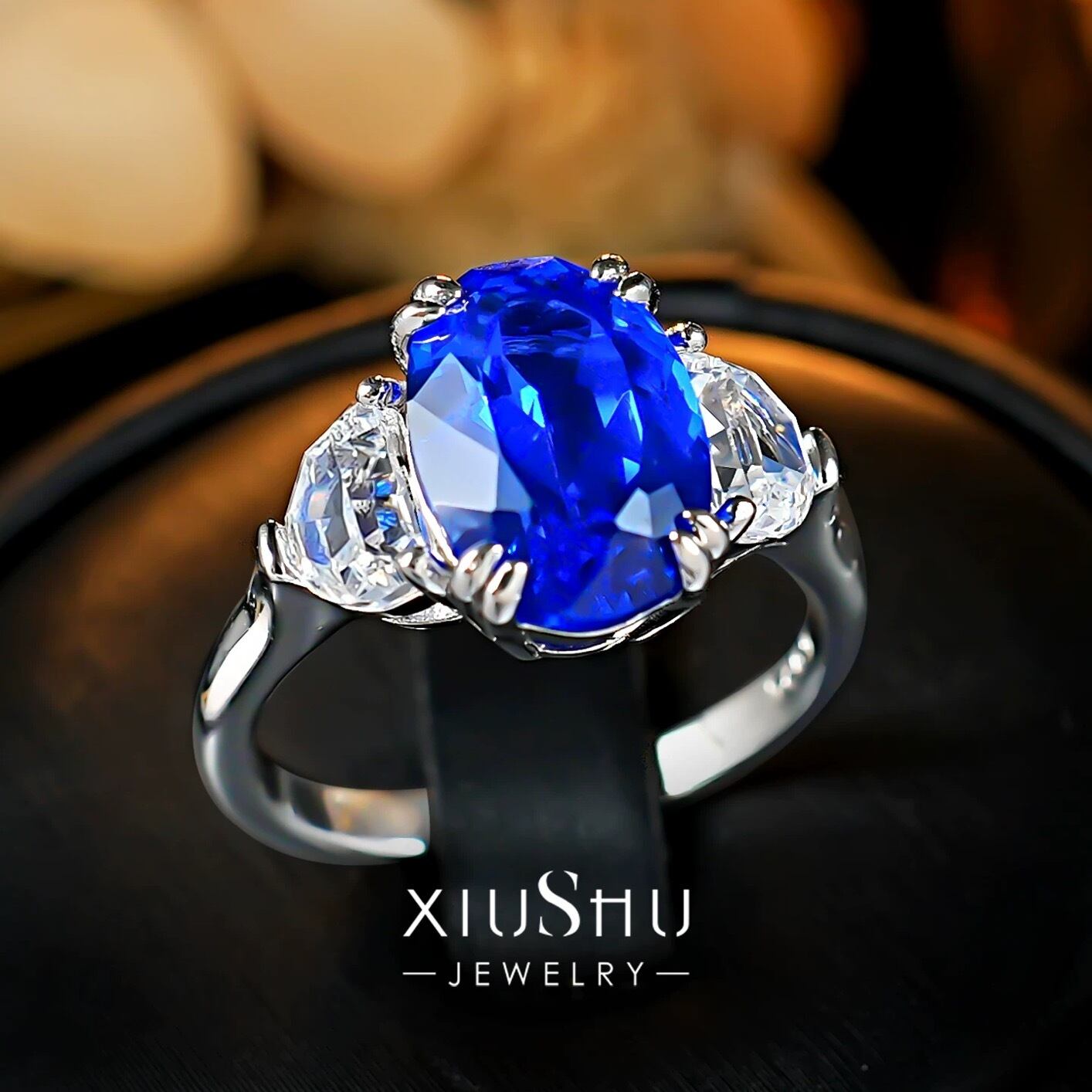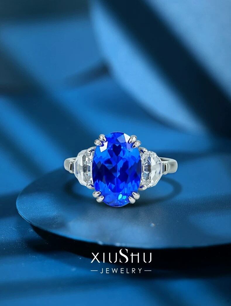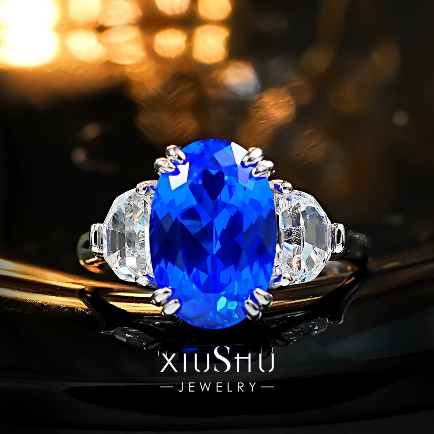 合成スピネル ブルー オーバル 高炭素ダイヤモンド キラキラ ゴージャス 指輪 ハイカーボンダイヤモンド S925 シルバー925 リング レトロ ビッグ ラージ