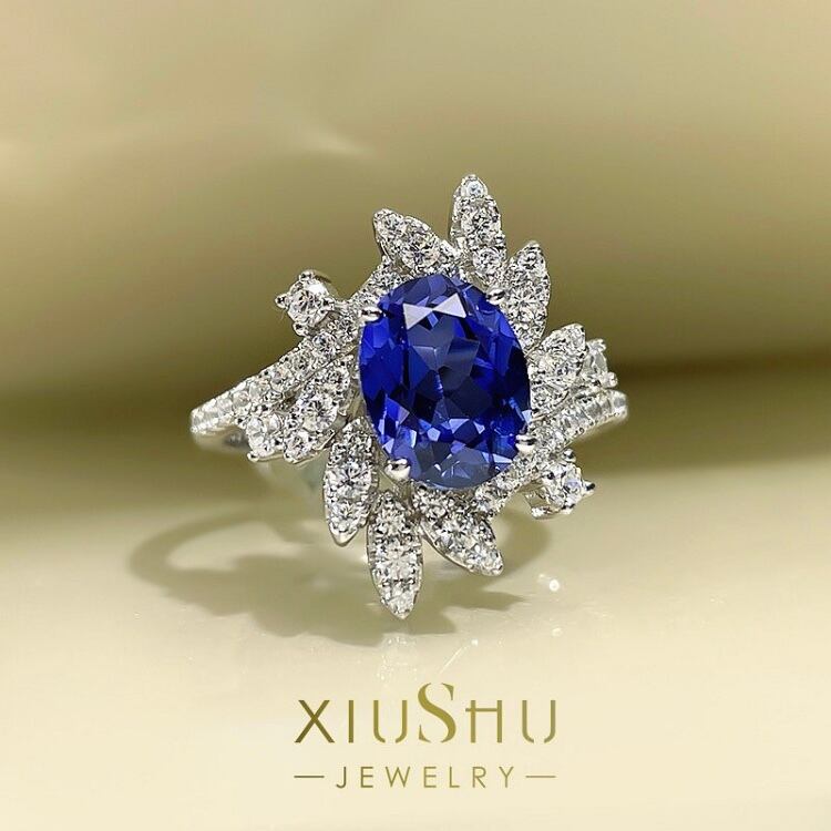 人工ヤグルマギクサファイアはブルーカラーが美しくキラキラでゴージャスです。ラグジュアリーでレトロで洗練されたクラシックなデザインです。