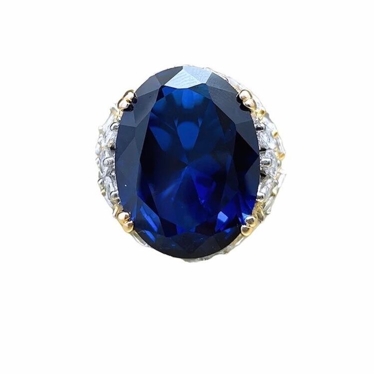 19カラット 人工サファイア コランダム オーバル キラキラ スーパーラージ リング 指輪 ラグジュアリー ゴージャス