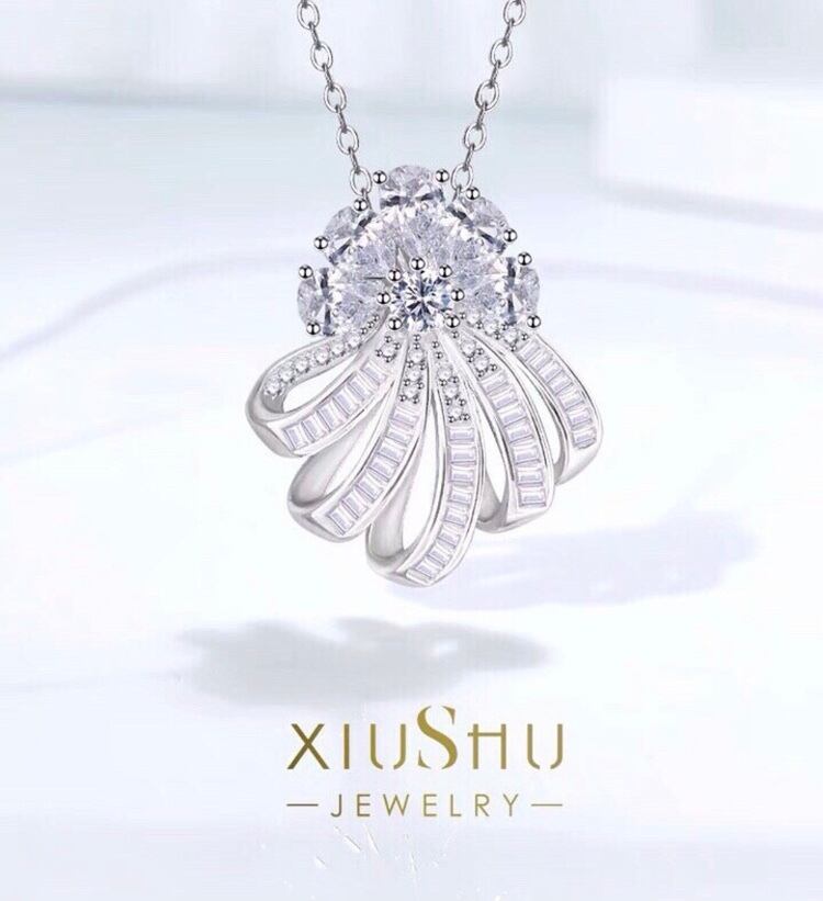 ハンドメイドのオーダーメイドのオリジナルの高炭素ダイヤモンドのフラワーリボンネックレスになります。