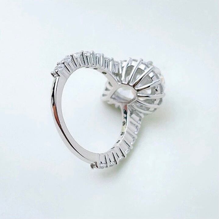 高炭素ダイヤモンドとは、最新技術によって製造された合成ダイヤモンド。本物のダイヤモンドに引けを取らない屈折率を持ち、その輝きが美しい存在感を放ちます。