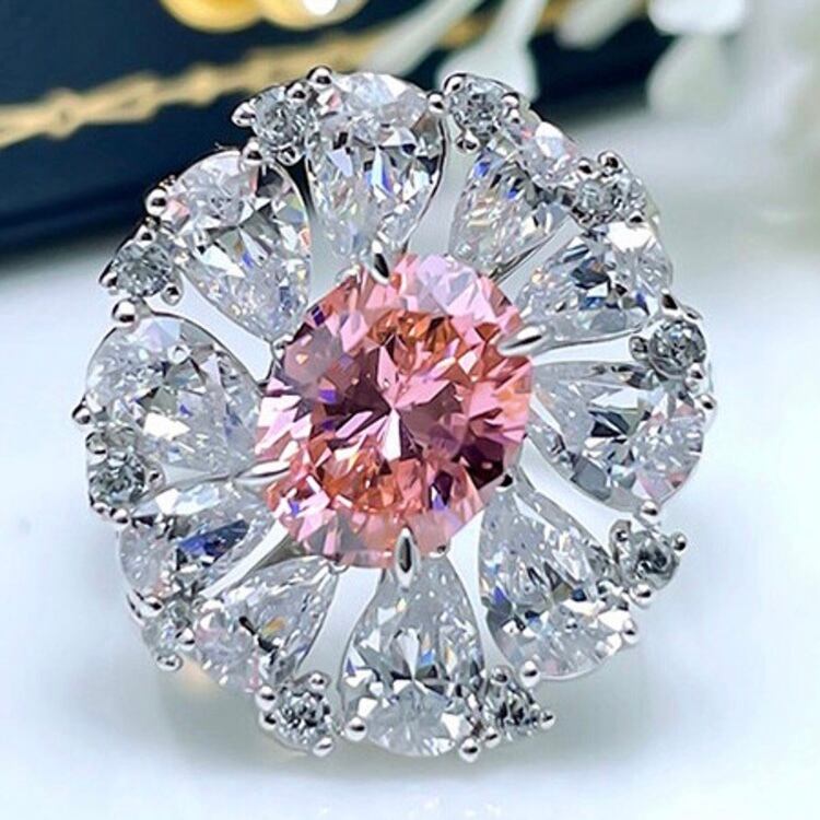 フラワー 人工パパラチアサファイア キラキラ 高炭素ダイヤモンド リング 指輪 ラグジュアリー ゴージャス 花 春