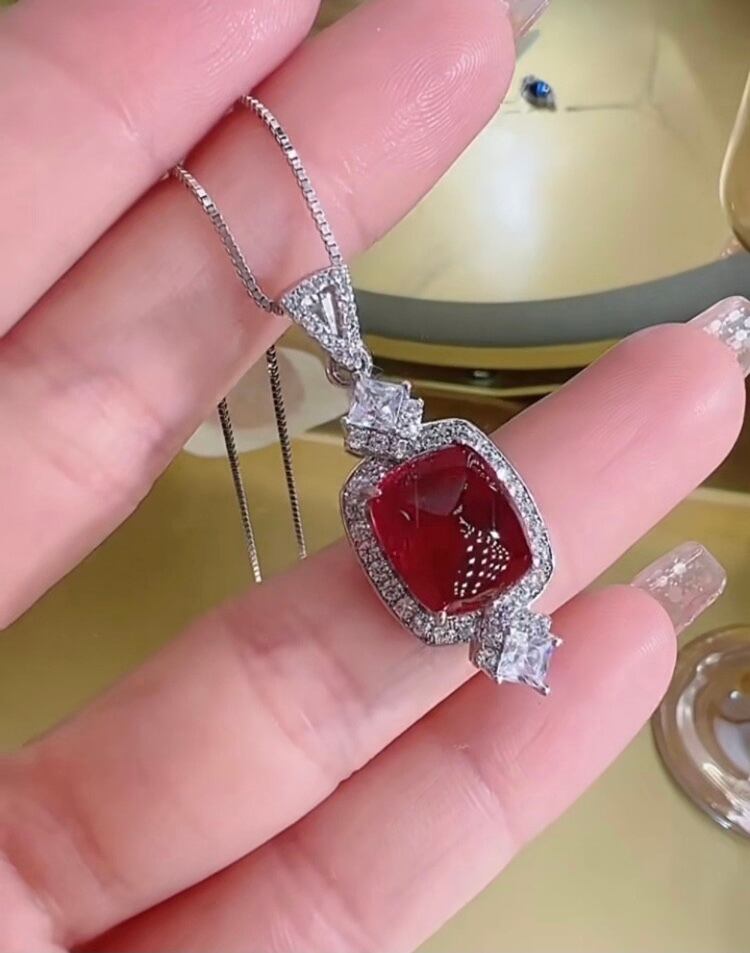 オリジナルの人工ルビーと高炭素ダイヤモンドのネックレスになります。