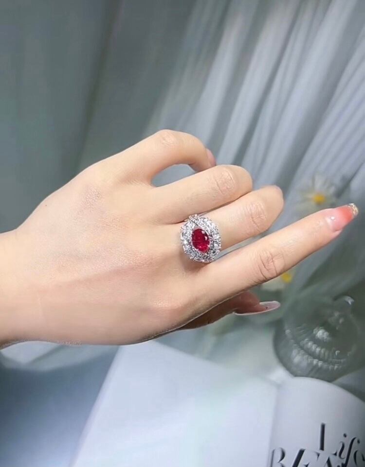 オリジナルの人工ルビーと高炭素ダイヤモンドのエタニティリングになります。