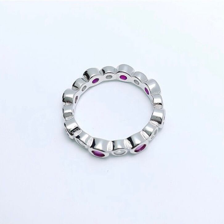 オリジナルの人工ルビーと高炭素ダイヤモンドのエタニティリングになります。