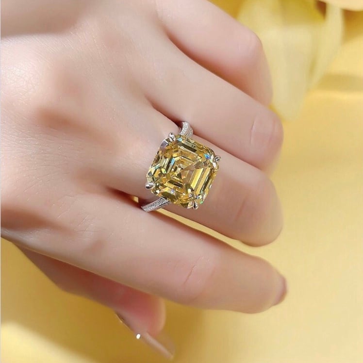 オリジナルの高炭素ダイヤモンドのアッシャーカットのスクエアリングになります。