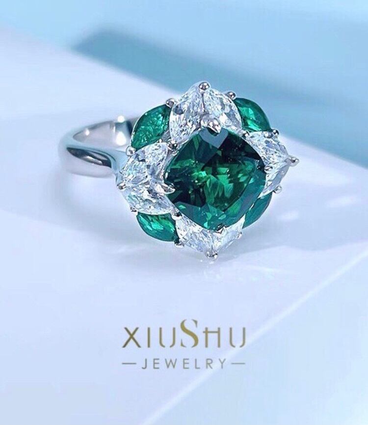 オリジナルの人工エメラルドの高炭素ダイヤモンドのフラワーリングになります。