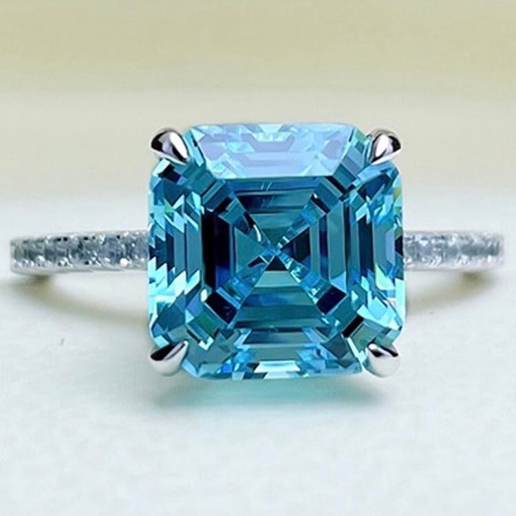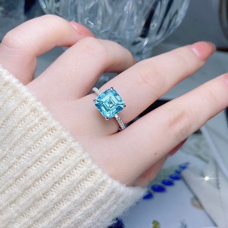 オリジナルの人工アクアマリンの高炭素ダイヤモンドのリングになります。