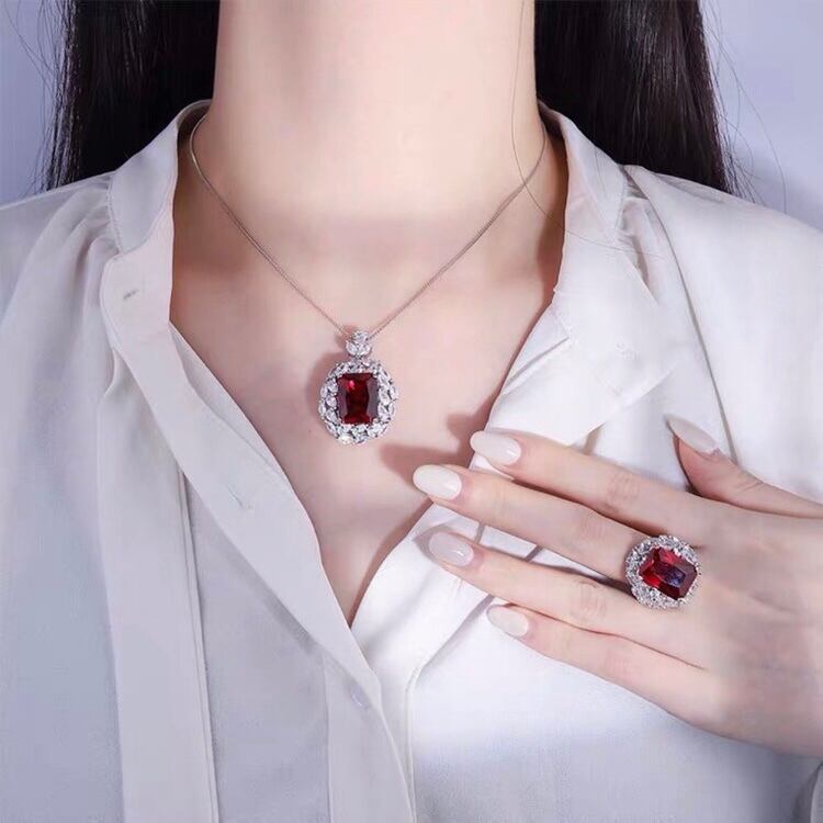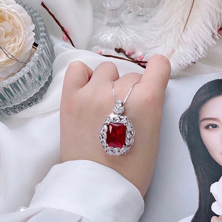 オリジナルの人工ルビーと高炭素ダイヤモンドのネックレスになります。