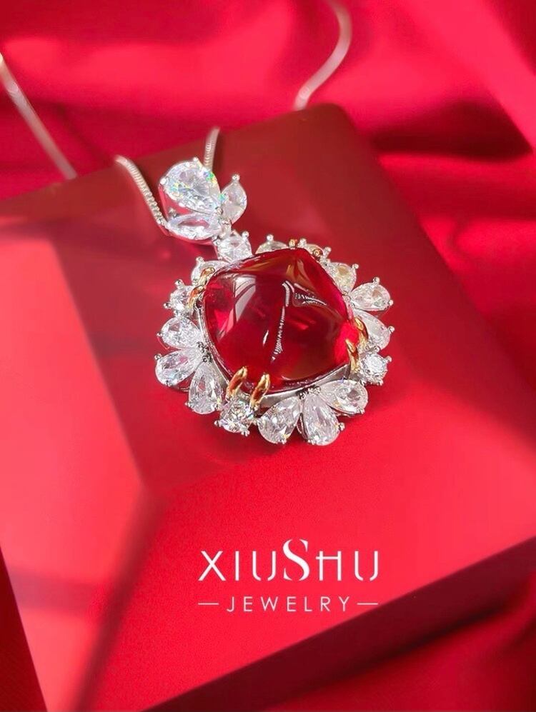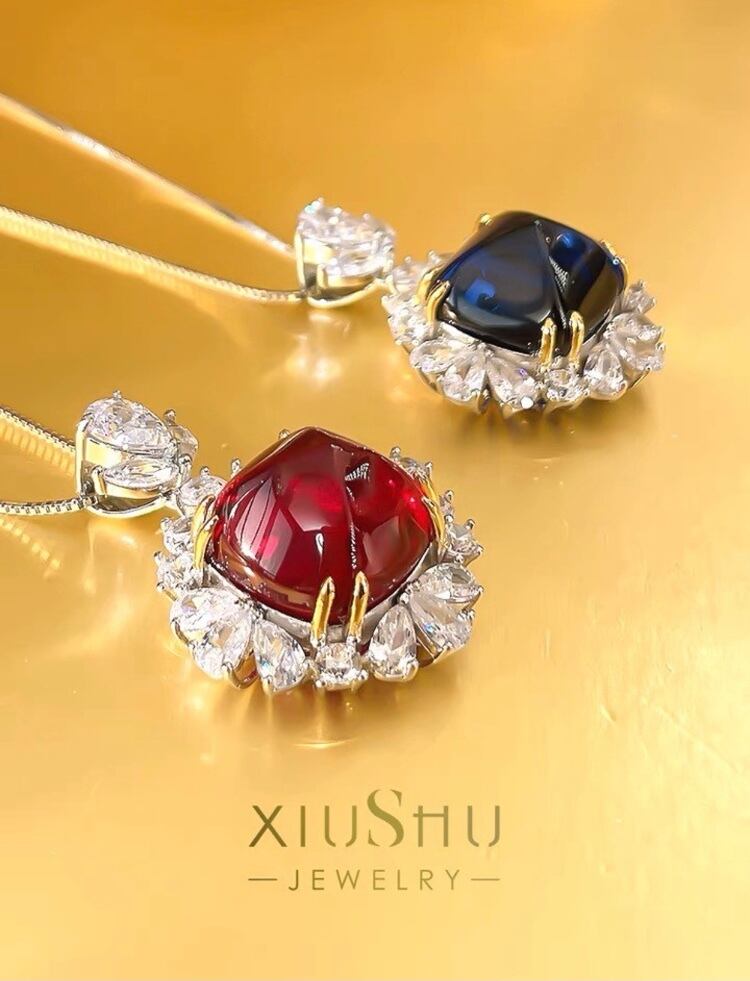オリジナルの人工ルビーと高炭素ダイヤモンドのネックレスになります。