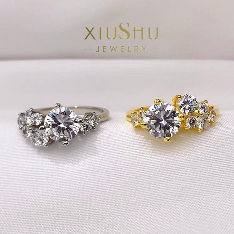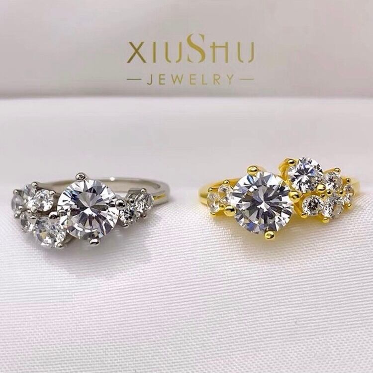 ラウンドのいくつもの高炭素ダイヤモンドが付いたゴージャスキラキラでおしゃれなリングです。