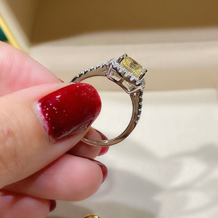 プリンセス スクエア 高炭素ダイヤモンド キラキラ ゴージャス ラグジュアリー ヘイローリング イエロー 黄色