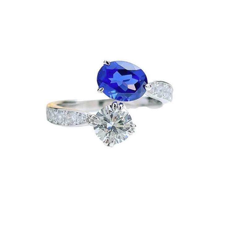 オリジナルの人工サファイア高炭素ダイヤモンドの約2カラーのリングになります。
