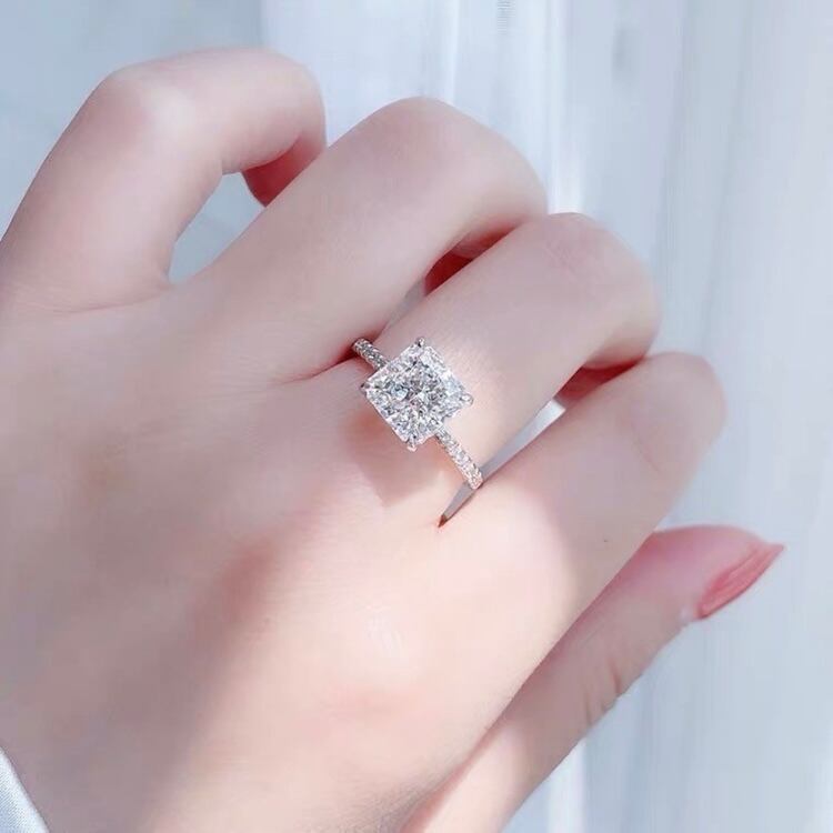 オリジナルの高炭素ダイヤモンドのスクエアラディアントカットリングになります。
