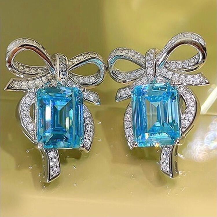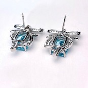 オリジナルの人工アクアマリン高炭素ダイヤモンドのリボンスタッドピアスになります。