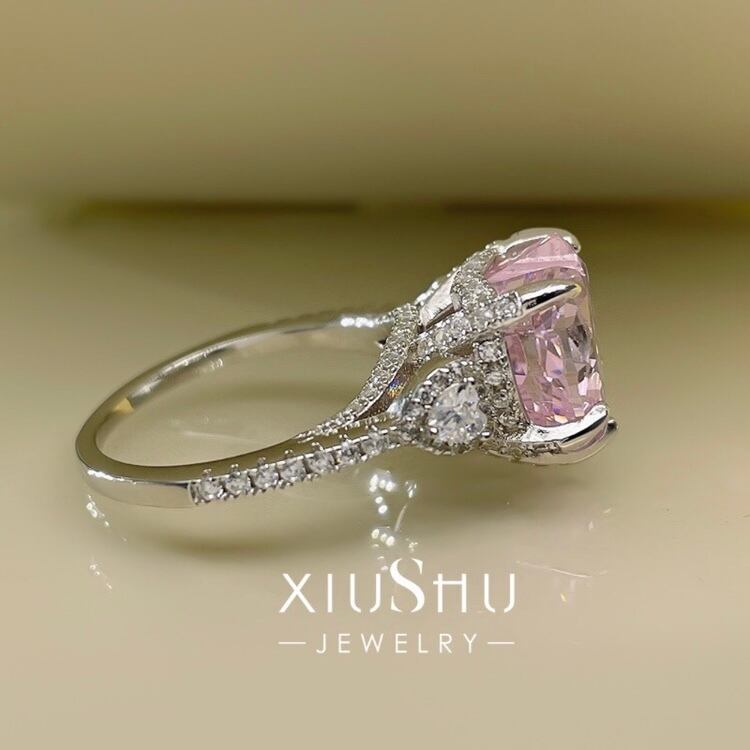 ライトピンクカラー。脇石までハート形でがとても可愛くキラキラゴージャスシンプルで、普段使いにもピッタリです。
