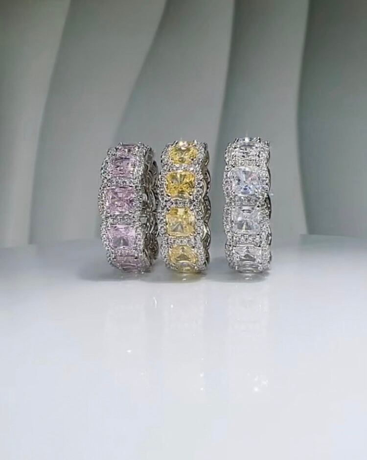 オリジナルの高炭素ダイヤモンドのスクエアヘイローリングになります。