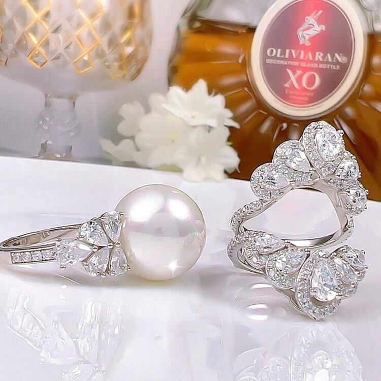 オリジナルの人工マザーオブパールと高炭素ダイヤモンドのリングになります。2本セットです。