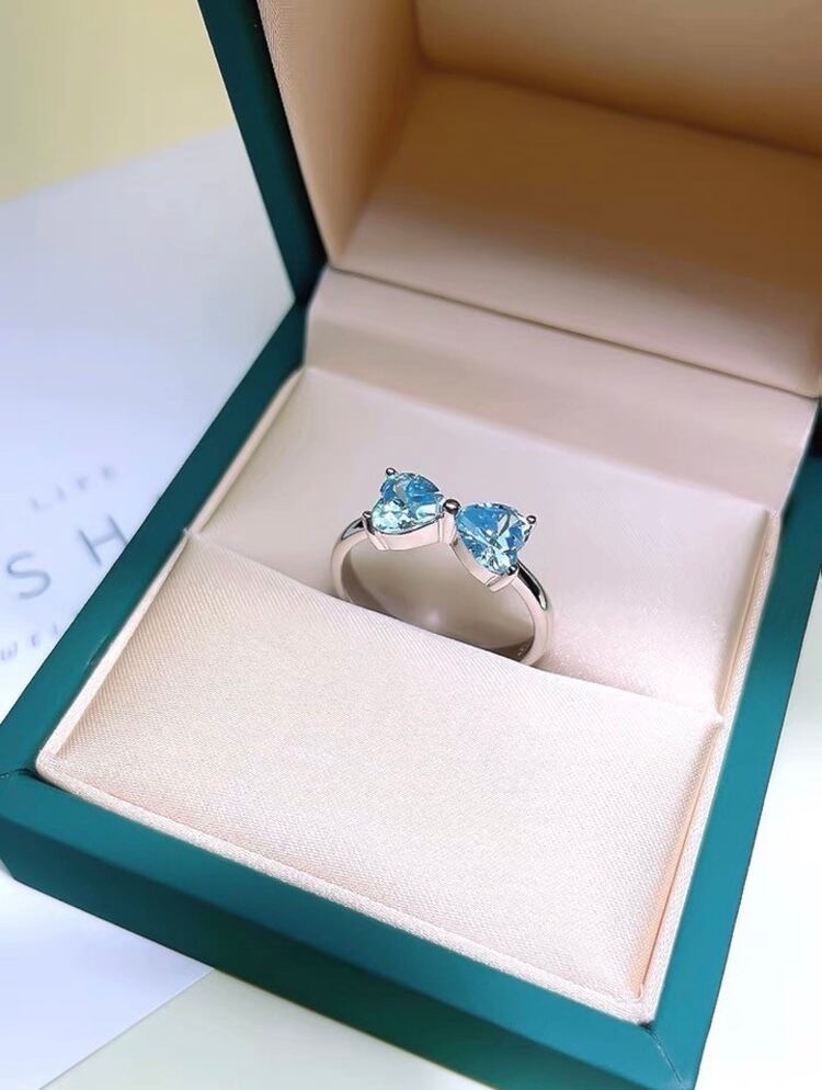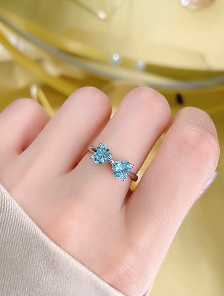 オリジナルの人工アクアマリンの高炭素ダイヤモンドのリボンリングになります。