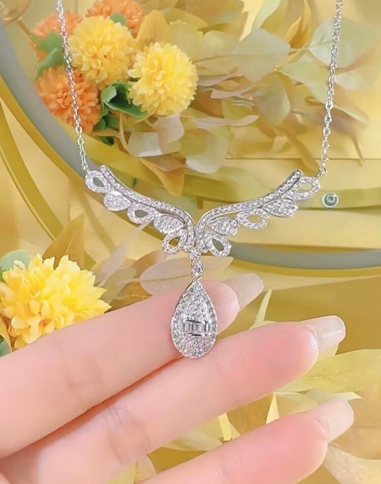 ウィング 羽 翼 ドロップ 高炭素ダイヤモンド キラキラ ゴージャス ラグジュアリー ネックレス 白 フェザー ウイング