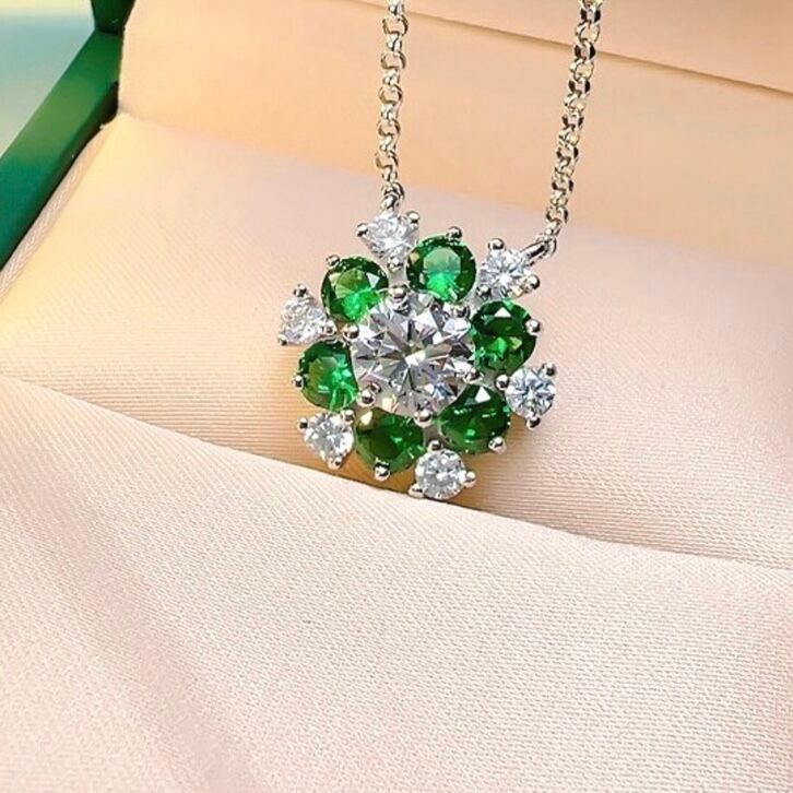 オリジナルの高炭素ダイヤモンドの人工エメラルドのフラワーネックレスになります。